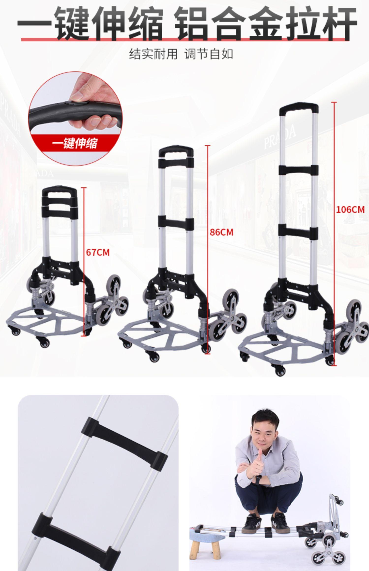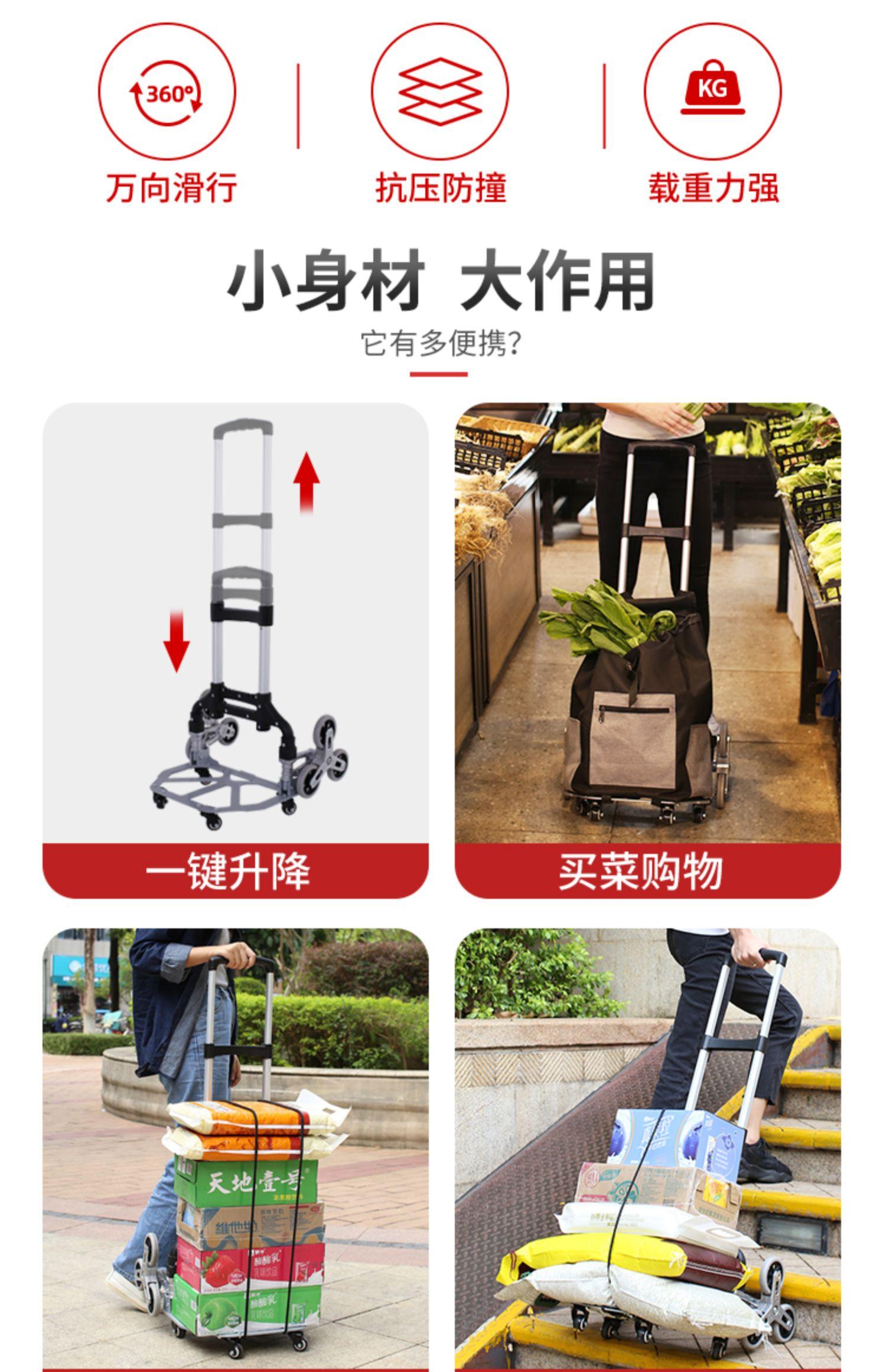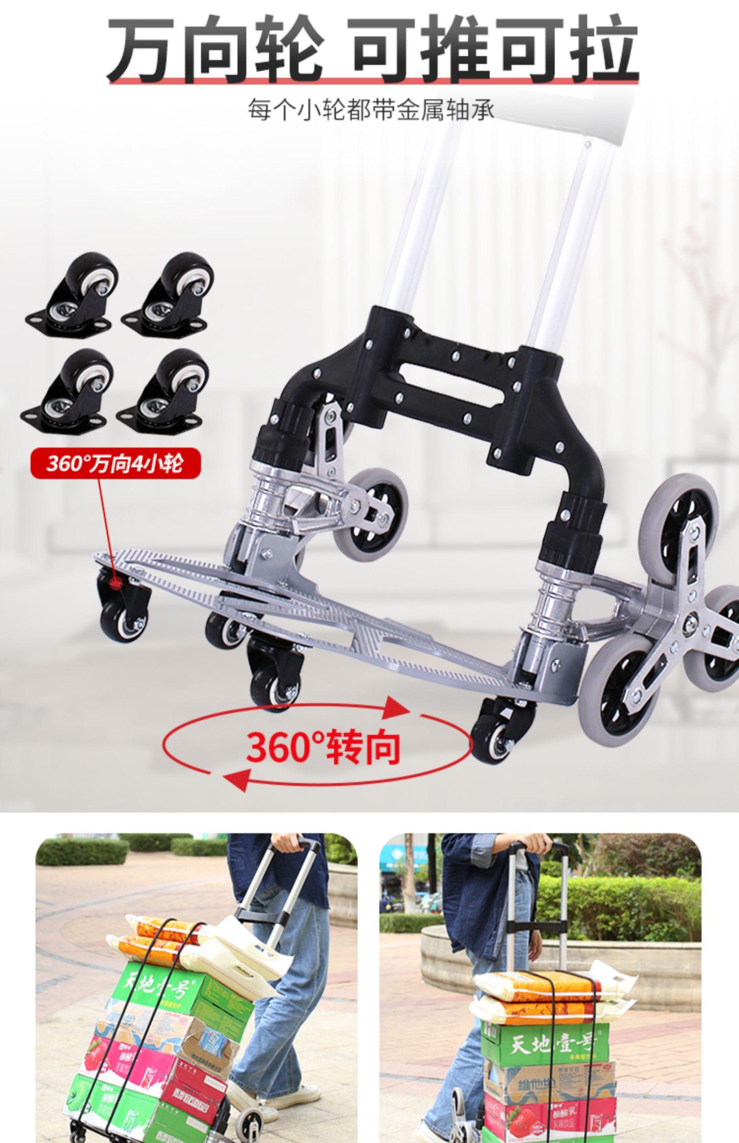 Carro para Subir Escaleras Plegable de Aleación de Aluminio Carro de Compras Portátil Carro Silencioso para el Hogar Remolque