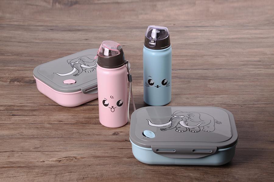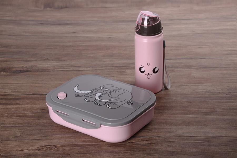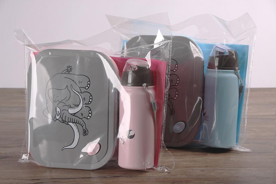 Bolsa de dibujos animados de plástico caja de almuerzo conjunto estudiante almuerzo separado caja de almuerzo sellada taza de agua