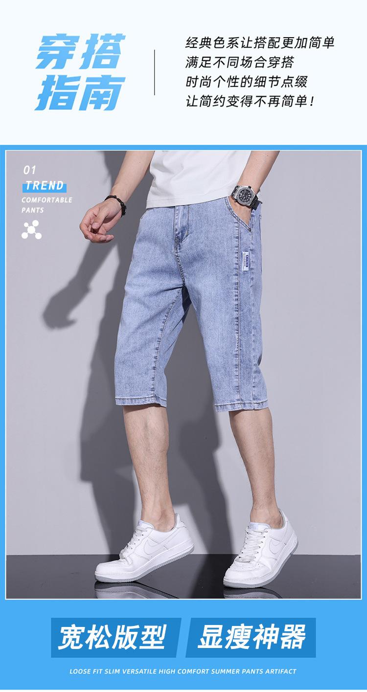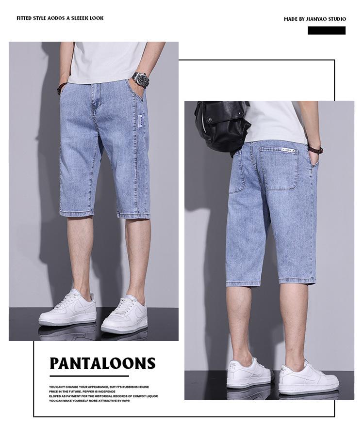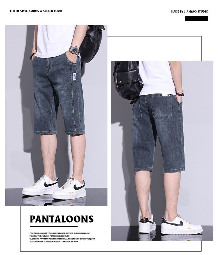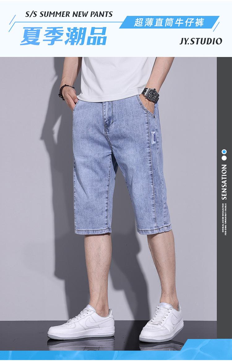 Pantalones cortos vaqueros de verano para hombre, finos, holgados y rectos, novedad de 2024, pantalones casuales de corte medio de 7 puntos que combinan con todo.