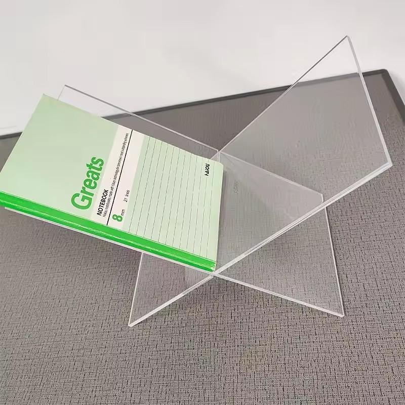 Expositor transparente para folletos, revistas, periódicos, lectura de partituras musicales, sujetalibros, adornos, estantería acrílica en forma de X.