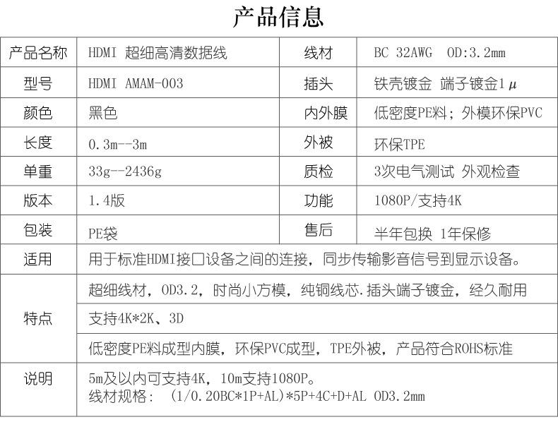 【Ámbito de aplicación】: Todos los dispositivos con interfaz HDMI se pueden conectar mediante cable HDMI, tales como: reproductor de DVD conectado a HDTV, reproductor HD de proyector, computadora con interfaz HDMI conectada a HDTV, proyector, consola de juegos PS3 conectada a HDTV, proyector... Diámetro 4.5