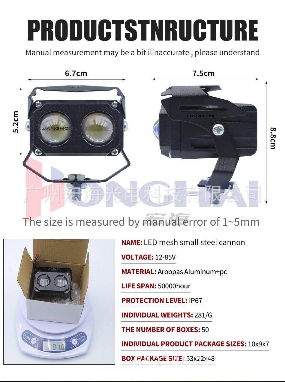 Foco LED para motocicleta, tienda de coches eléctricos, luz de calle, batería de coche, doble lente, luz láser auxiliar externa superbrillante