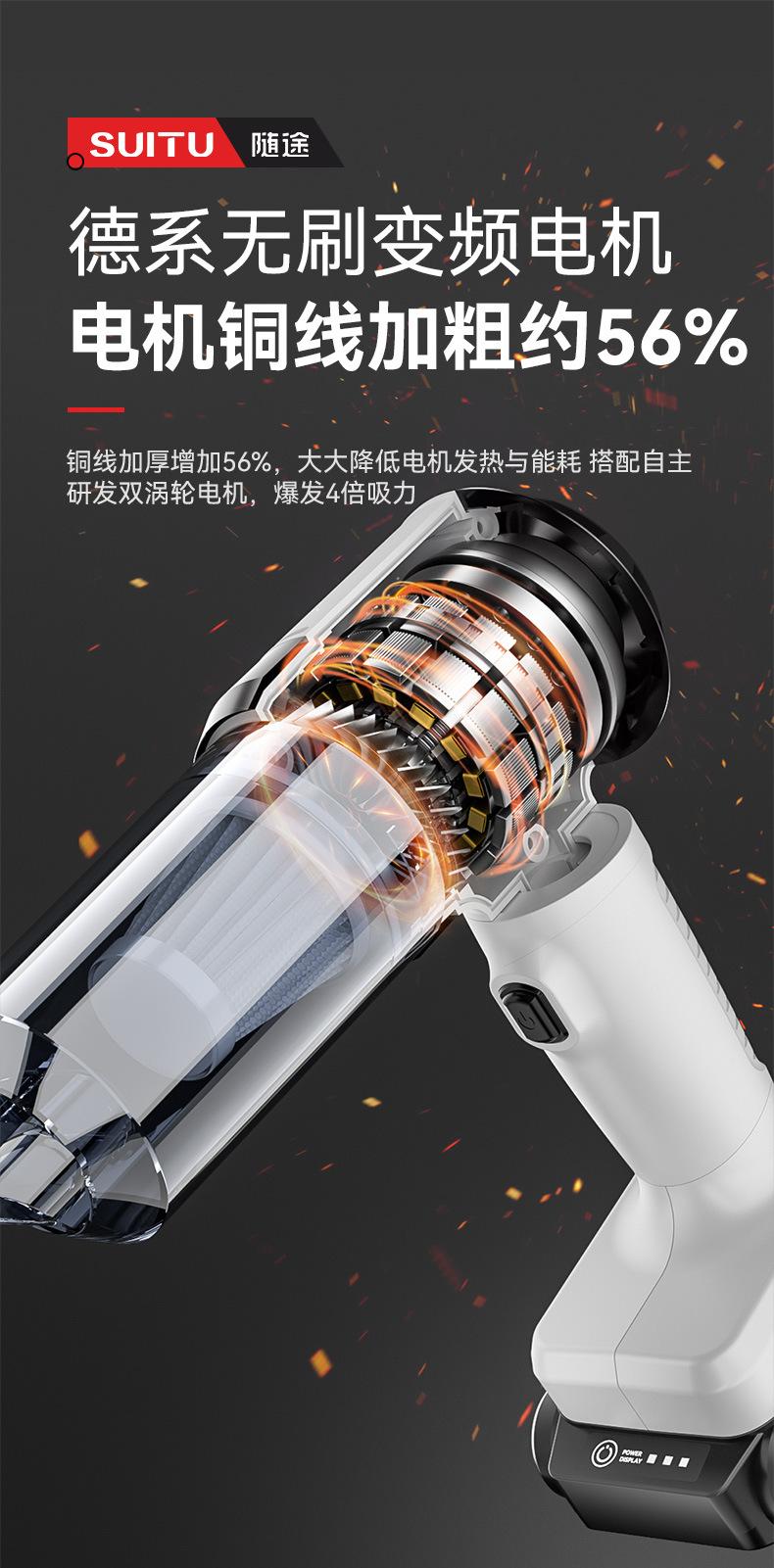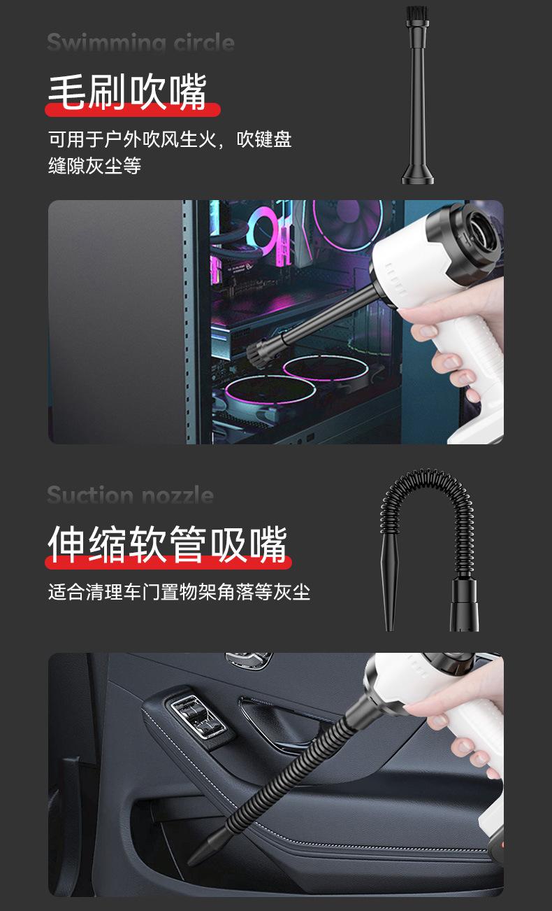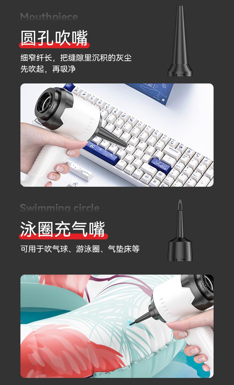 Las funciones anteriores son solo una pequeña parte de la descripción de los parámetros. El entorno de uso específico es el siguiente: 1. Inflar el flotador, 2. Inflar/desinflar el colchón inflable, el sofá inflable, la piscina inflable, etc., 3. Aspirar la bolsa de almacenamiento de la colcha, 4. Inflar/desinflar el kayak individual, 5. Soplar el polvo de la ranura de la tarjeta, 6. Soplar el polvo de la reparación de electrodomésticos. Y otras funciones de uso.