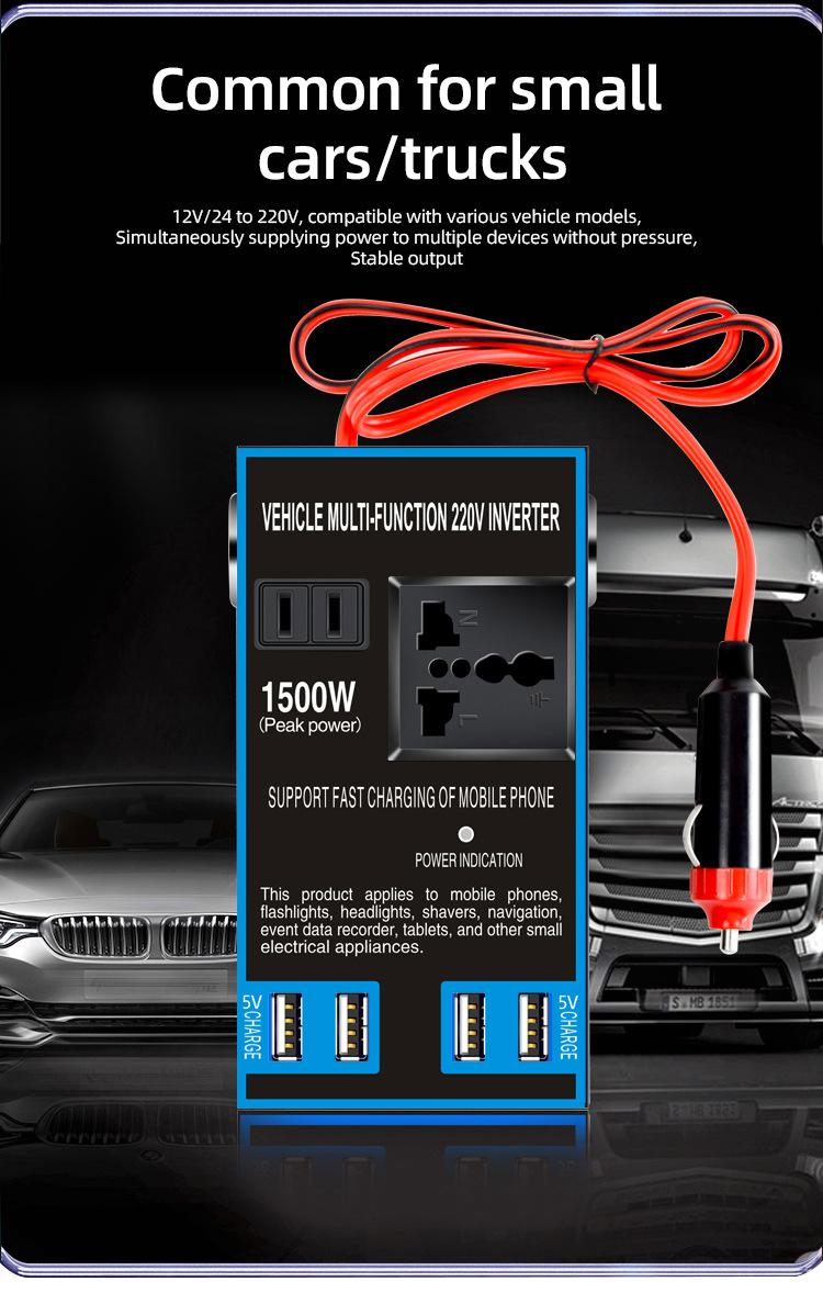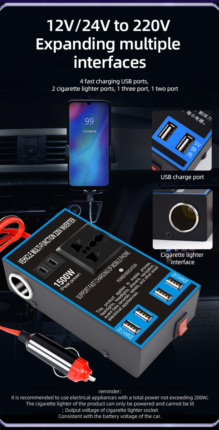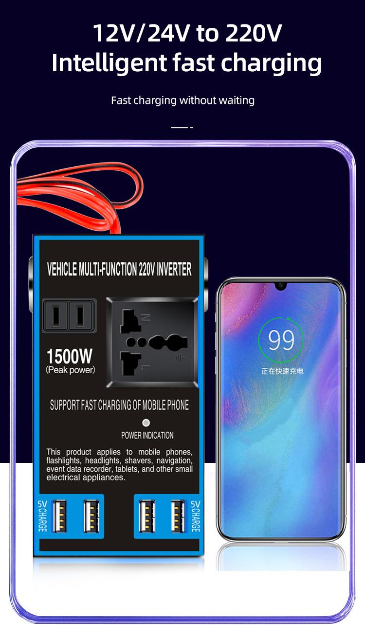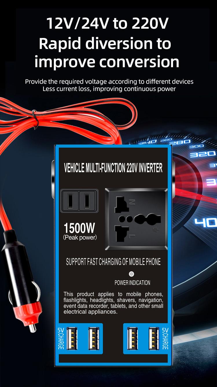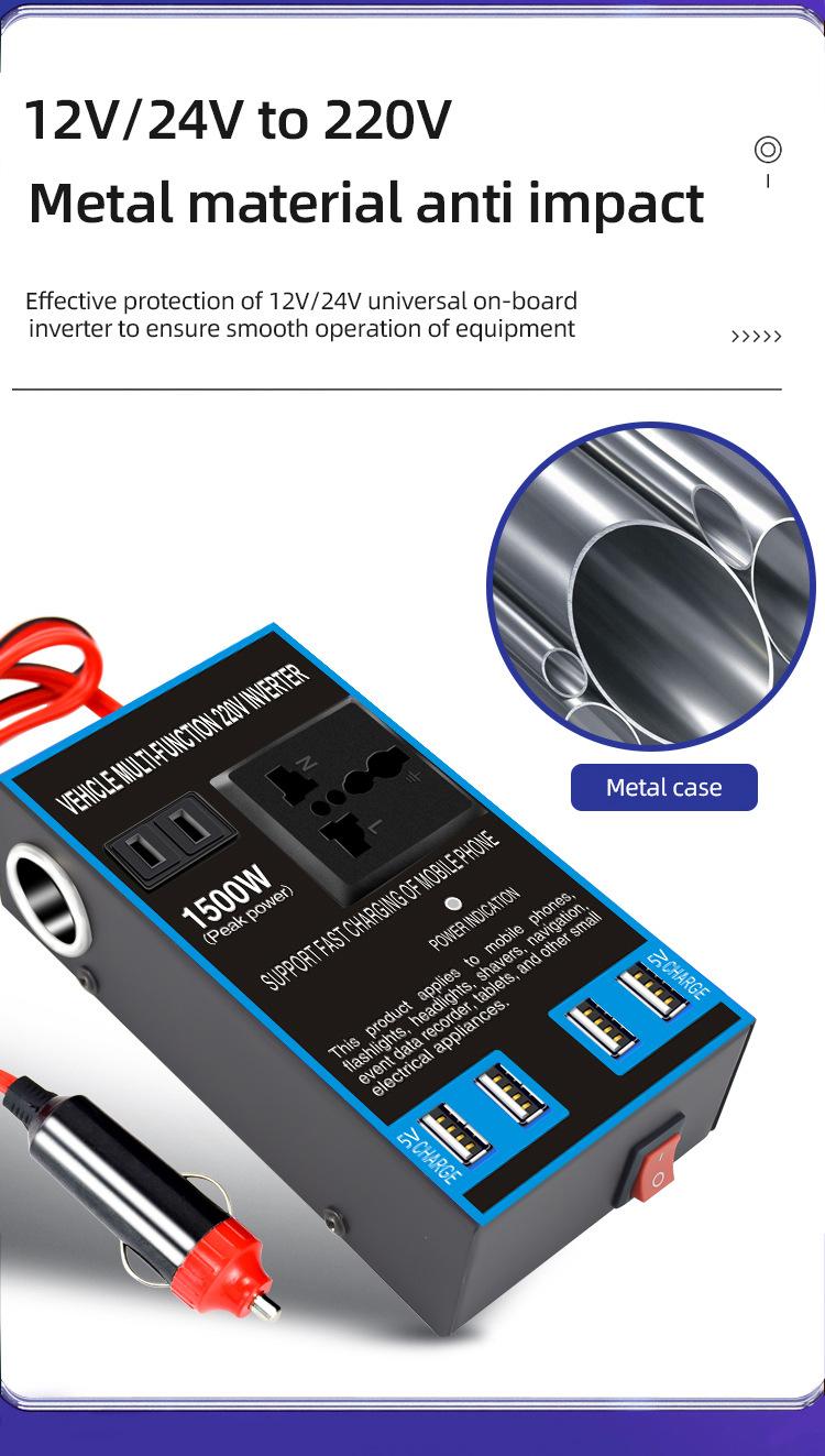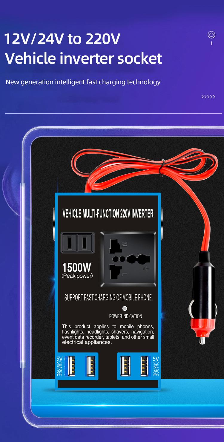 Convertidor inversor de coche de 12 V/24 V a 220 V, cargador de coche y camión de alta potencia, transformador, toma de corriente
