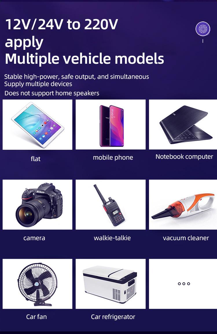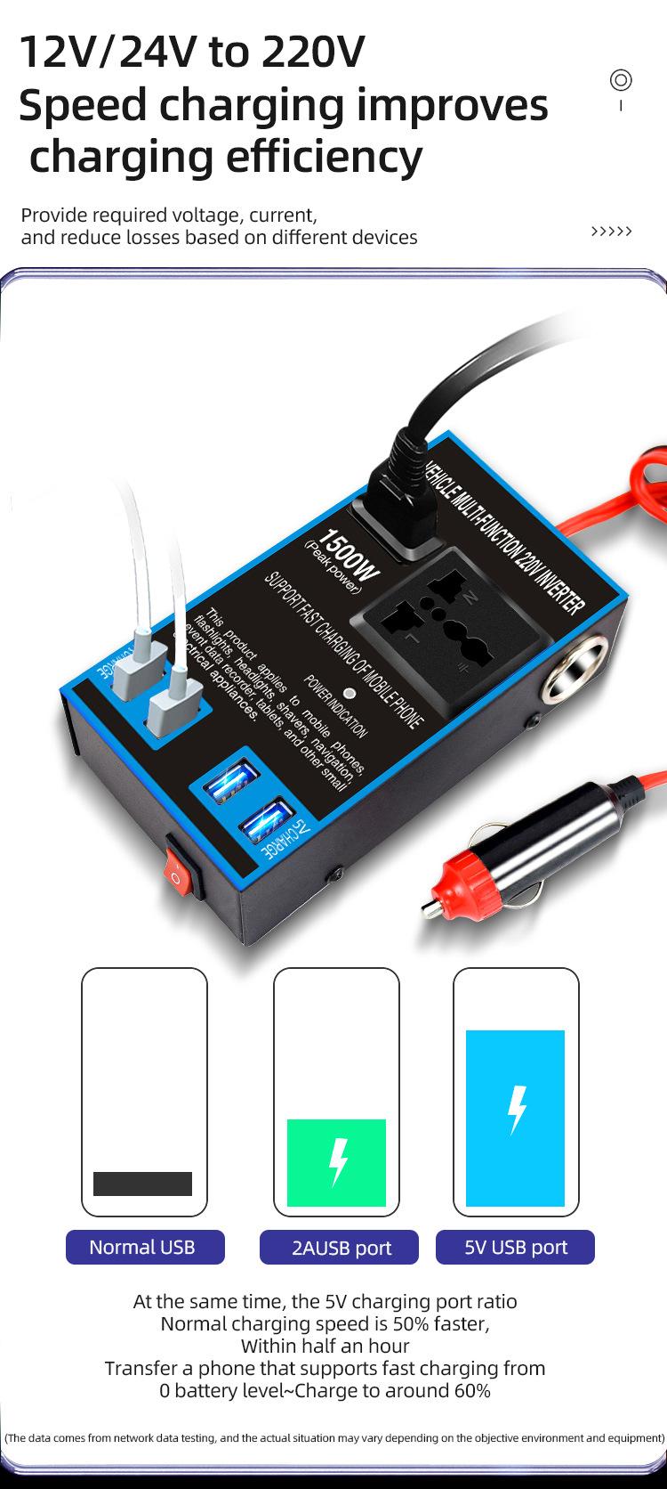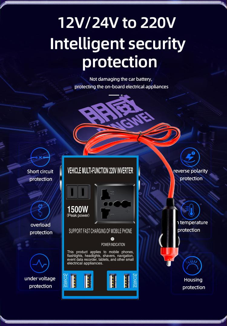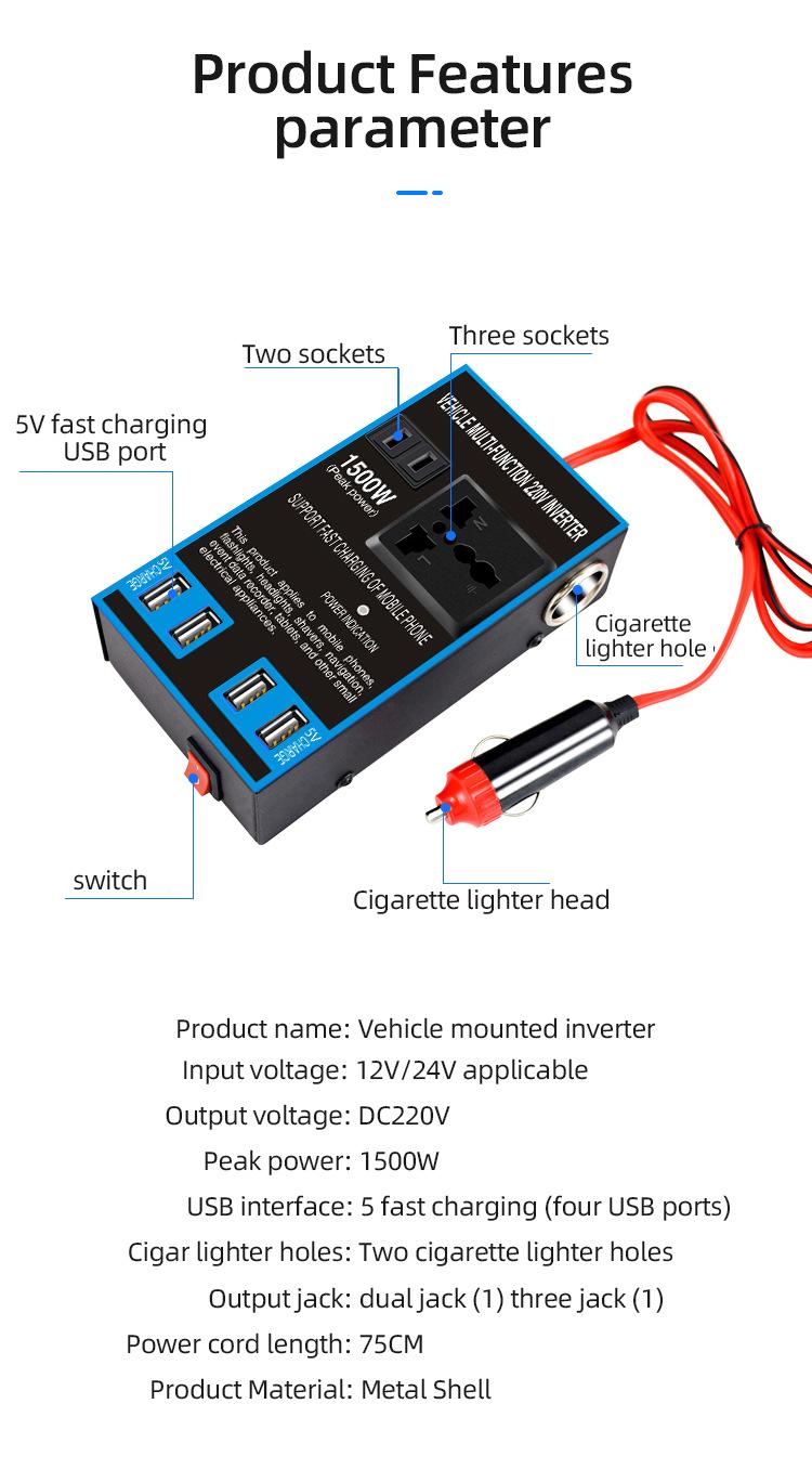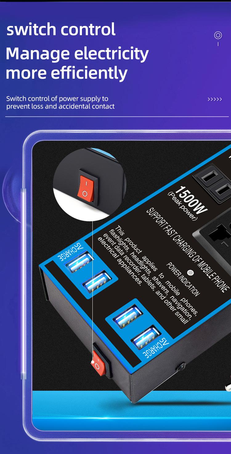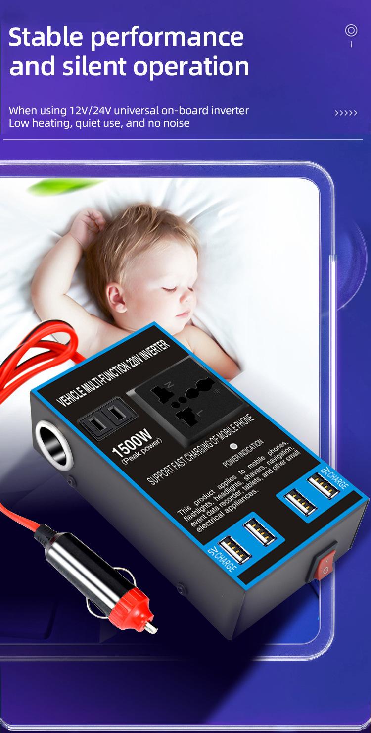 Convertidor inversor de coche de 12 V/24 V a 220 V, cargador de coche y camión de alta potencia, transformador, toma de corriente