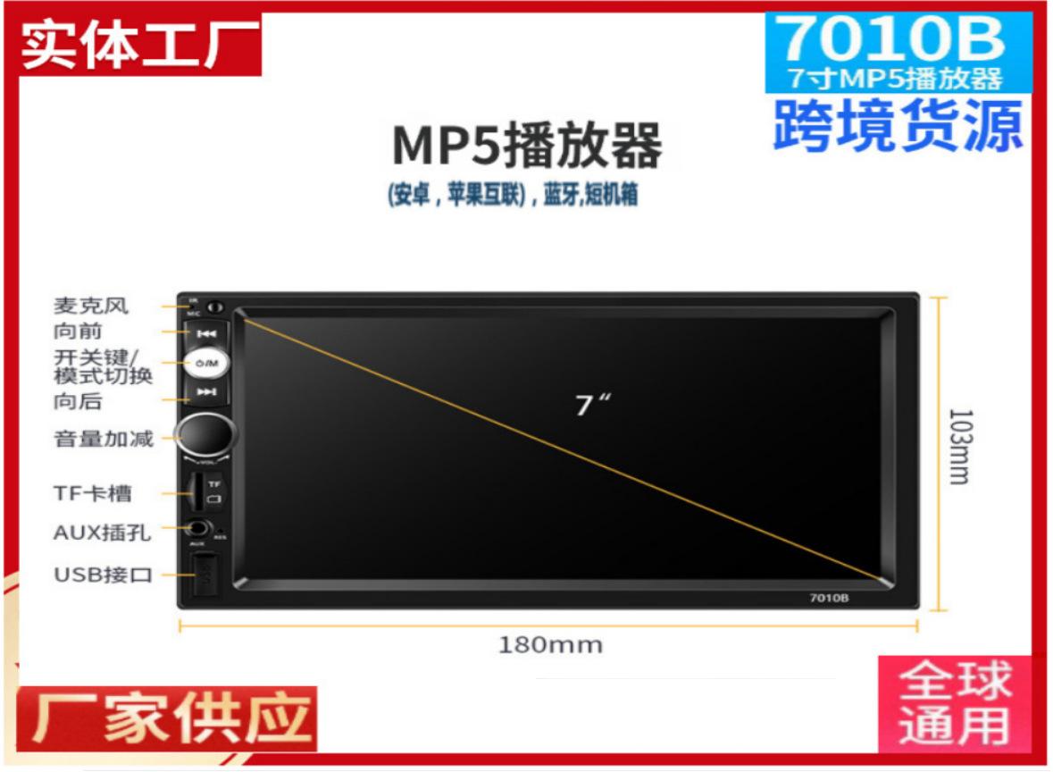 Reproductor MP5 para coche con Bluetooth y pantalla grande de alta definición de 7 pulgadas