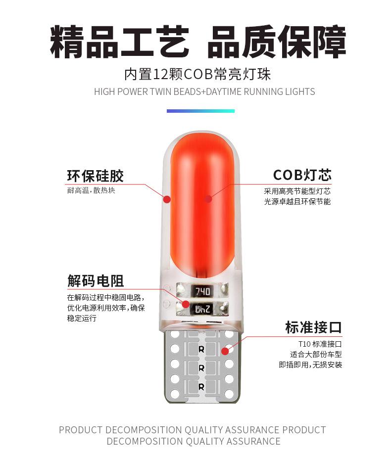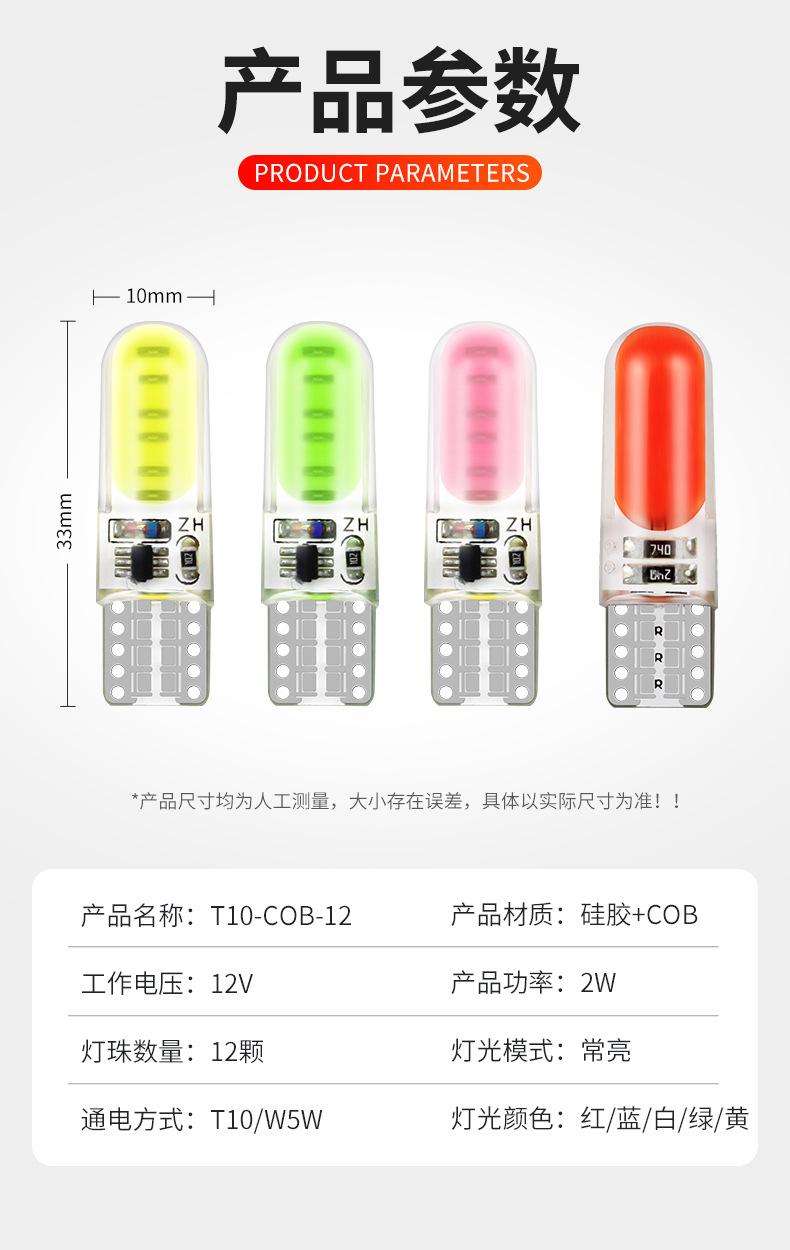 Lámpara LED pequeña de silicona de Cross Border Factory T10 COB 12SMD W5W para coche, lámpara de lectura para matrícula