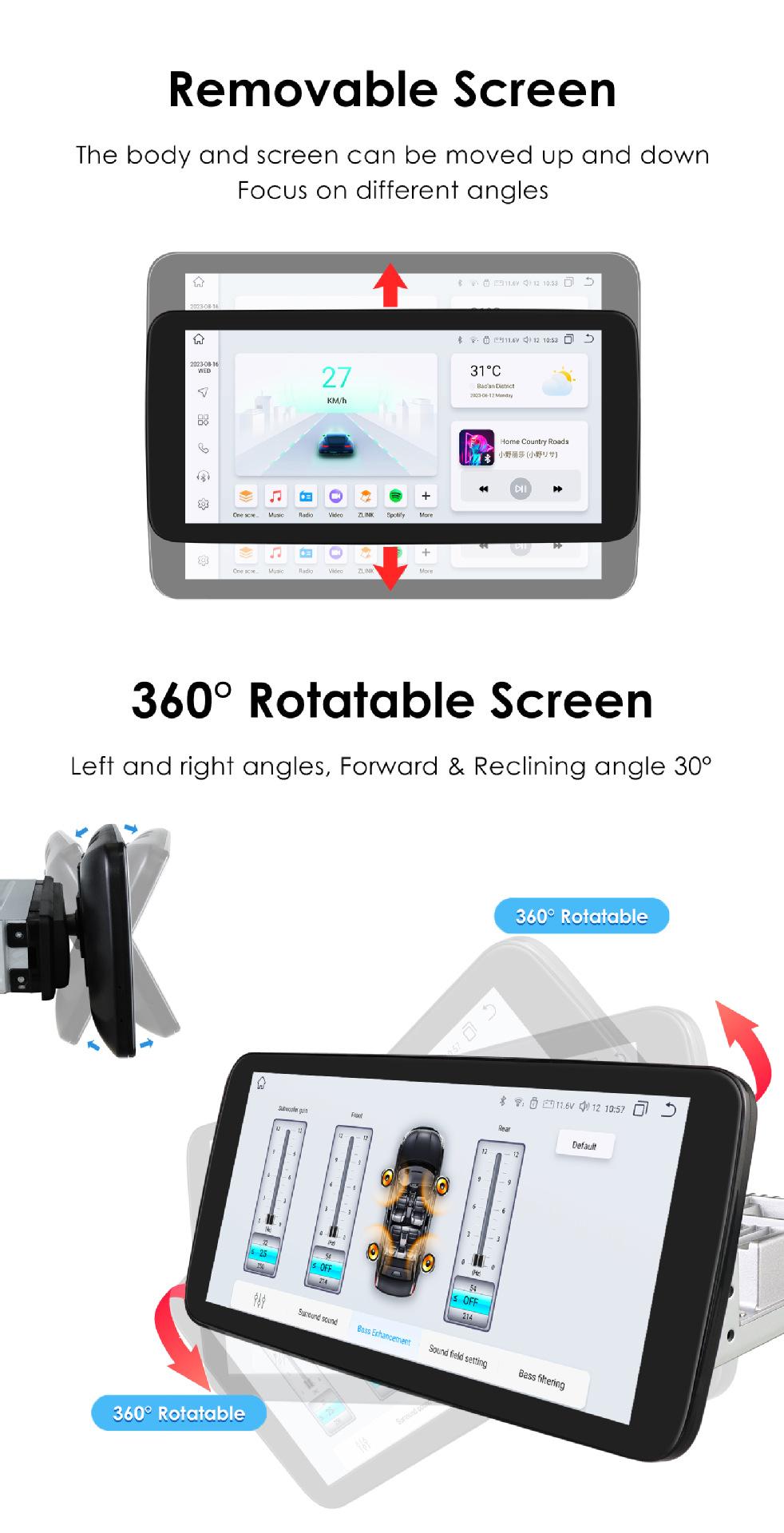 Reproductor Android para coche transfronterizo pantalla grande 10.33 pulgadas máquina de cabeza giratoria navegador host integrado máquina universal giratoria