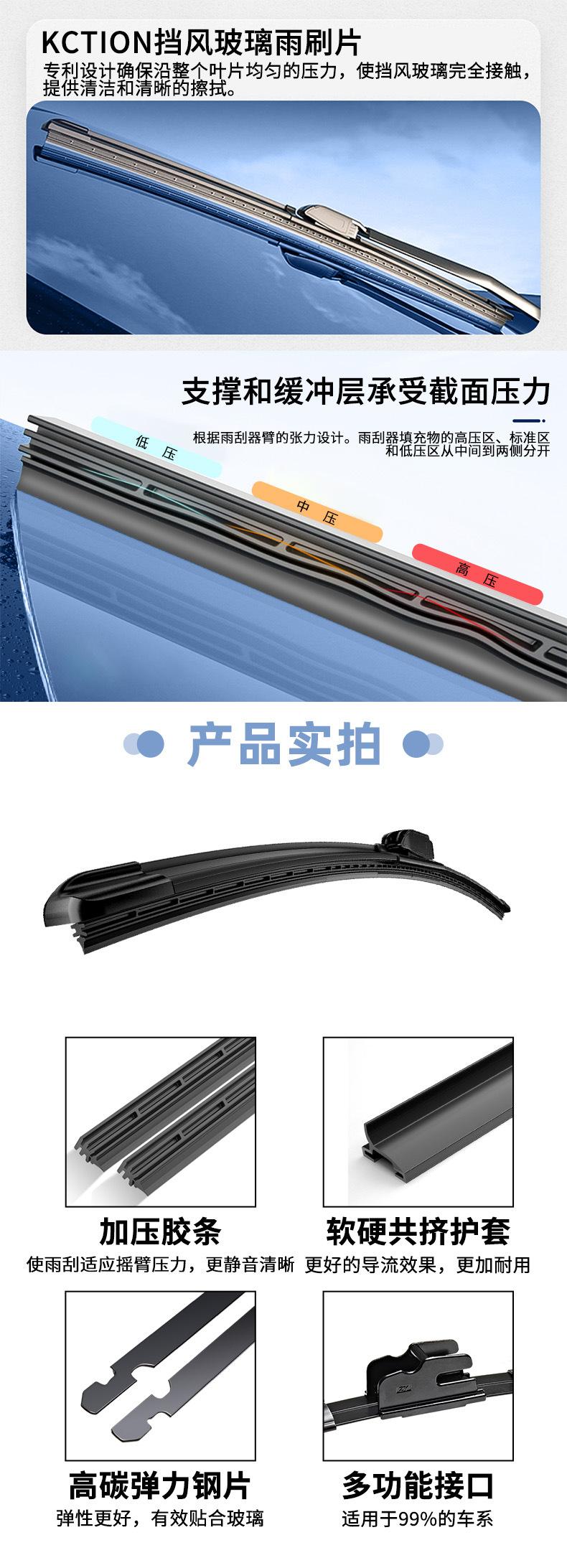 Limpiaparabrisas delantero universal silencioso multifuncional sin hueso más vendido transfronterizo, limpiaparabrisas con tira de goma doble A presurizada natural