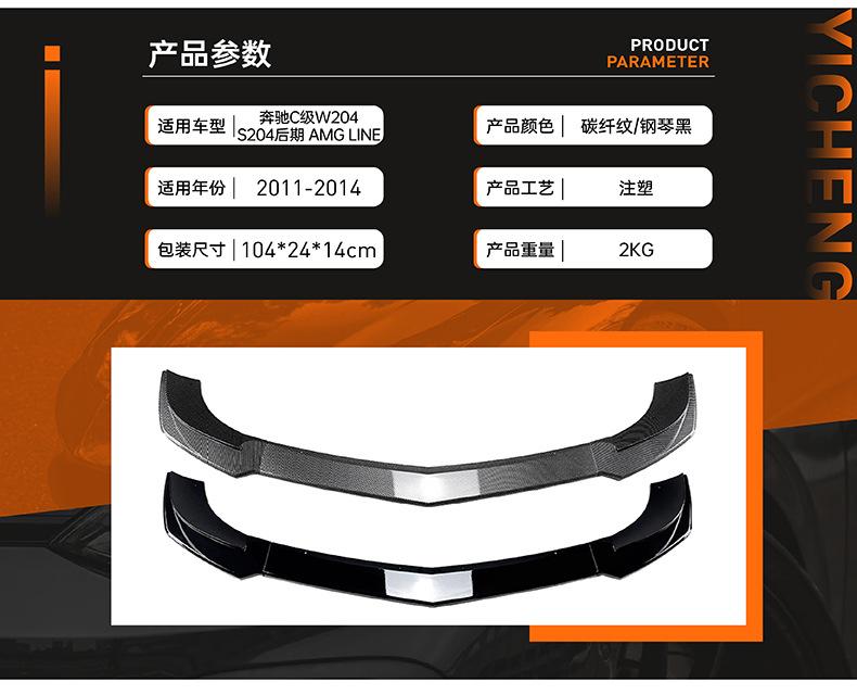 Adecuado para Mercedes-Benz Clase C W204 S204 Versión Deportiva 11-14 Labio Delantero Pala Delantera Spoiler Accesorios de Modificación Exterior