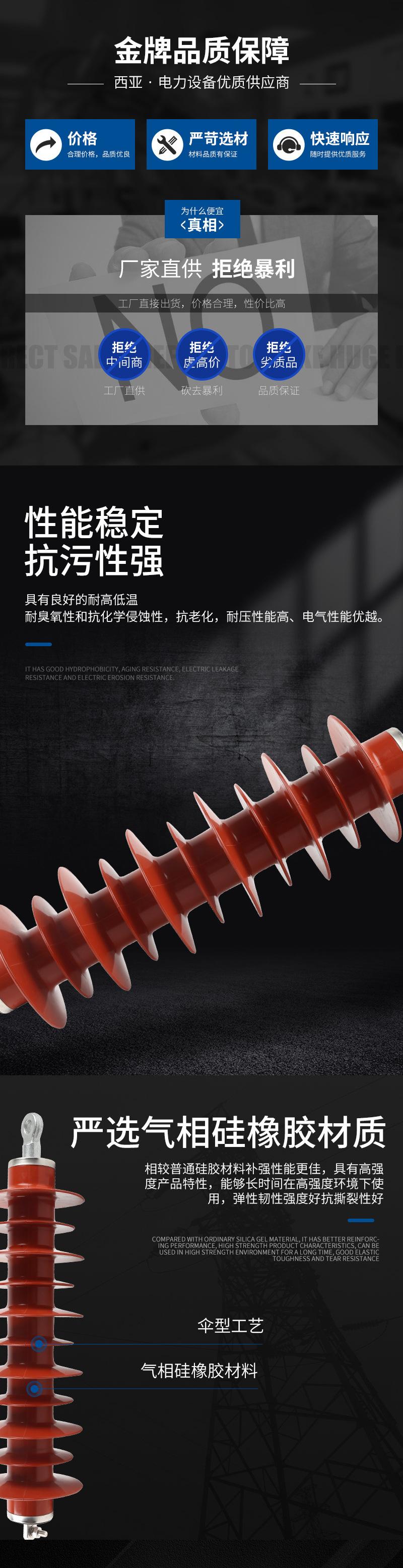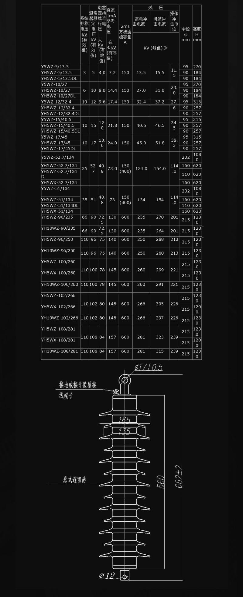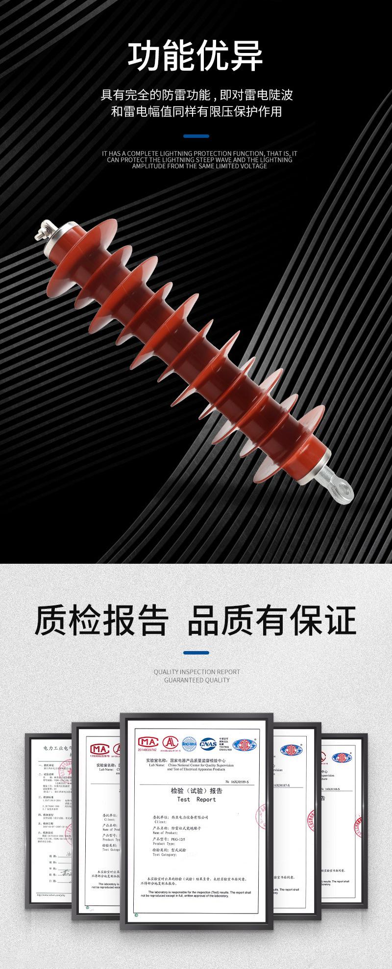 Pararrayos de suspensión tipo línea de 220 kV YH10WX-216/562 HY10CX-185/520 204/592