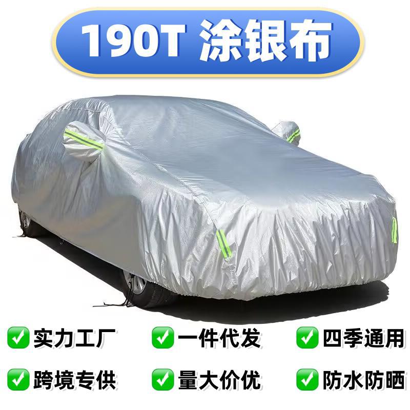 Cubierta para automóvil de comercio exterior con revestimiento plateado de una sola capa, tela Oxford 190T, parasol y parasol a prueba de lluvia, disponible en stock transfronterizo.