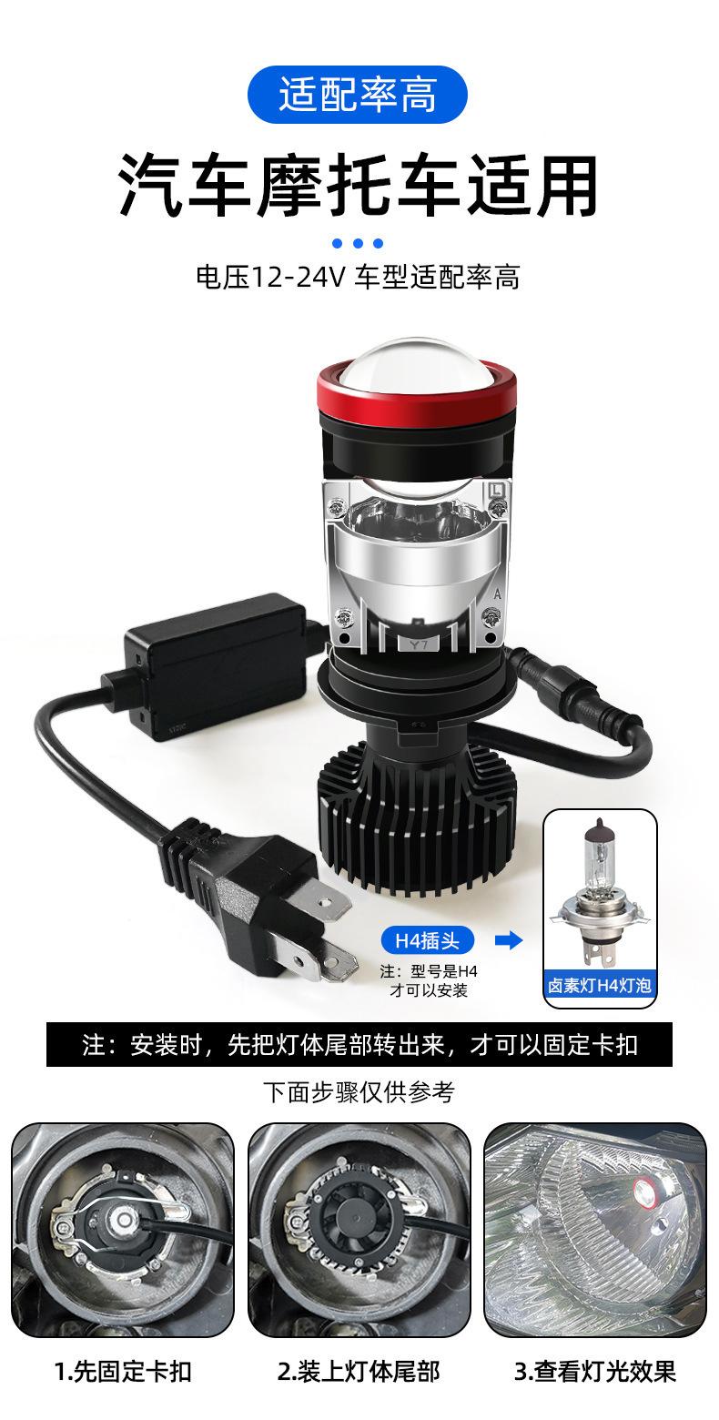 Faro LED con lente Y7D H4 luz alta y baja integrada luz delantera de coche doble luz ojo de pez mini luz de motocicleta monitor