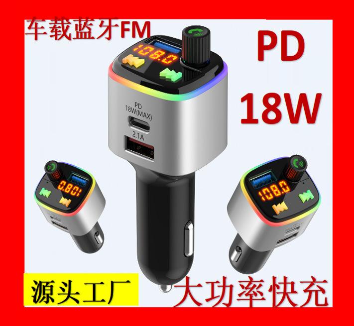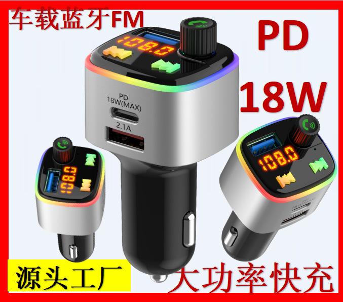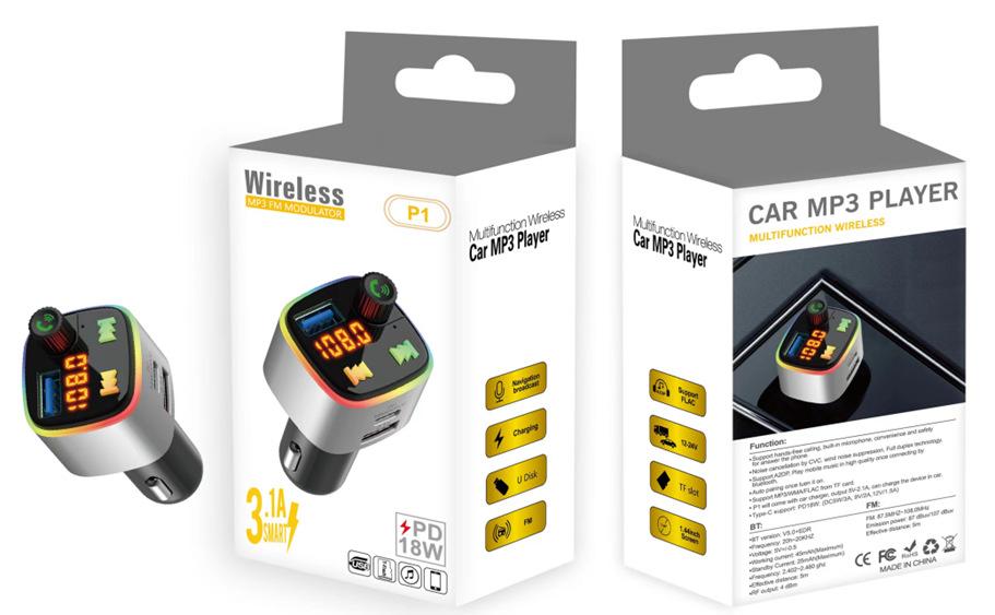 Cargador de coche con música Bluetooth P1 Carga rápida PD18W/QC3.0 llamada manos libres Bajo transmisor fm coche mp3