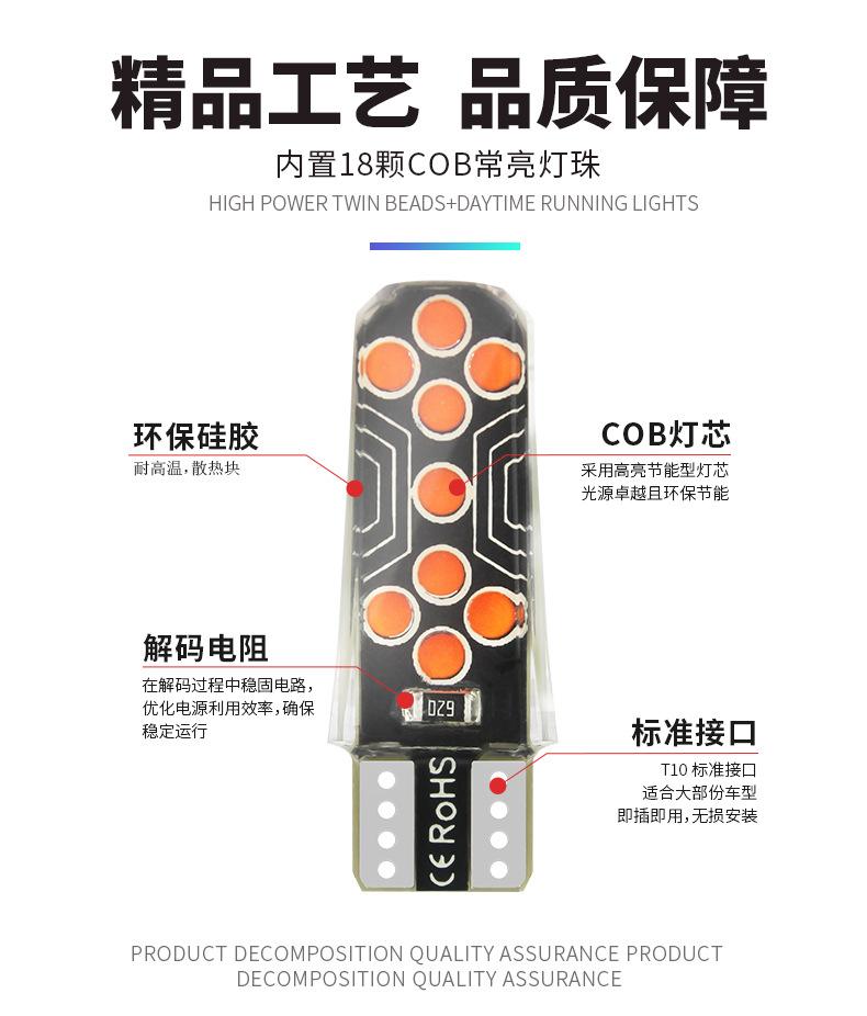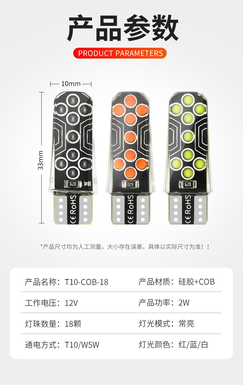Fábrica transfronteriza W5W T10 COB 18LED silicona indicador de ancho lámpara de placa COB decodificación contorno bombilla de lectura