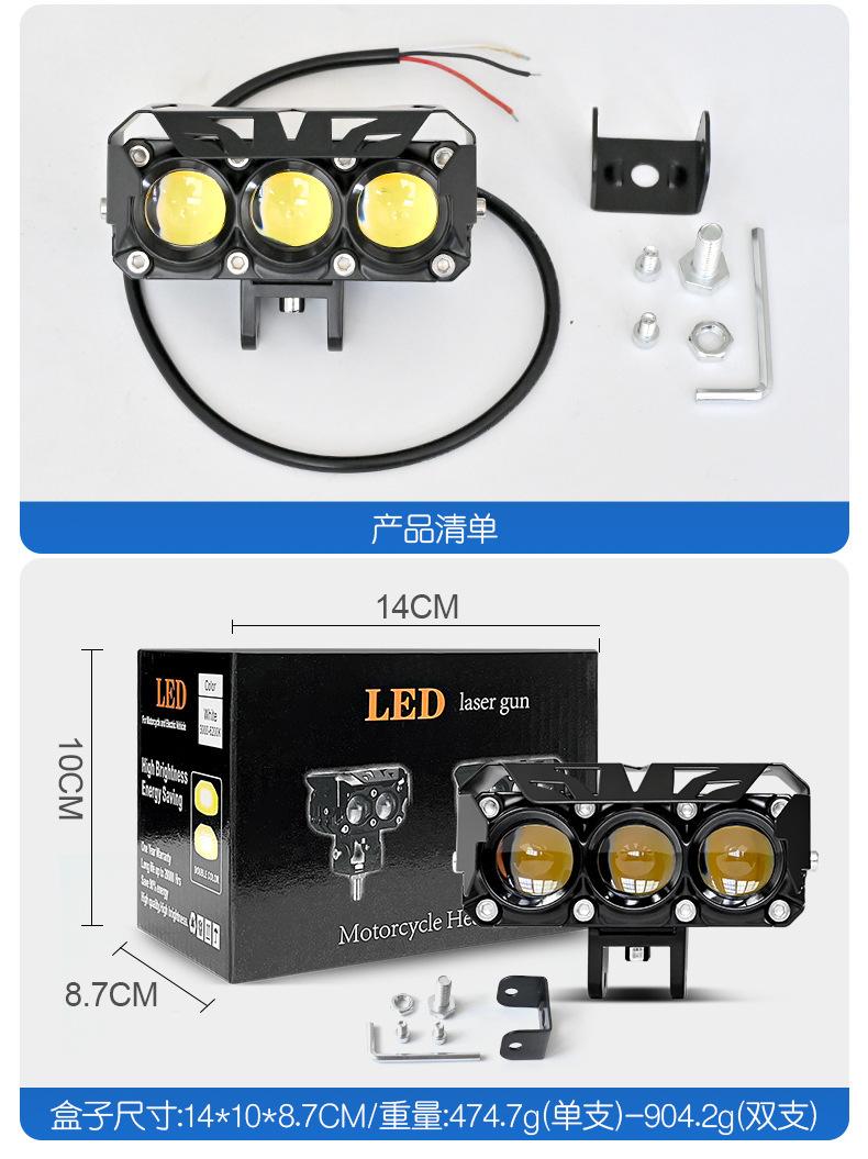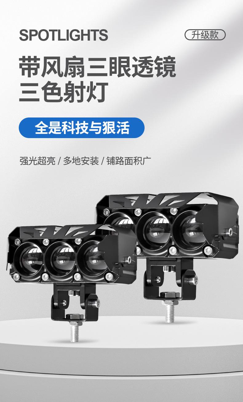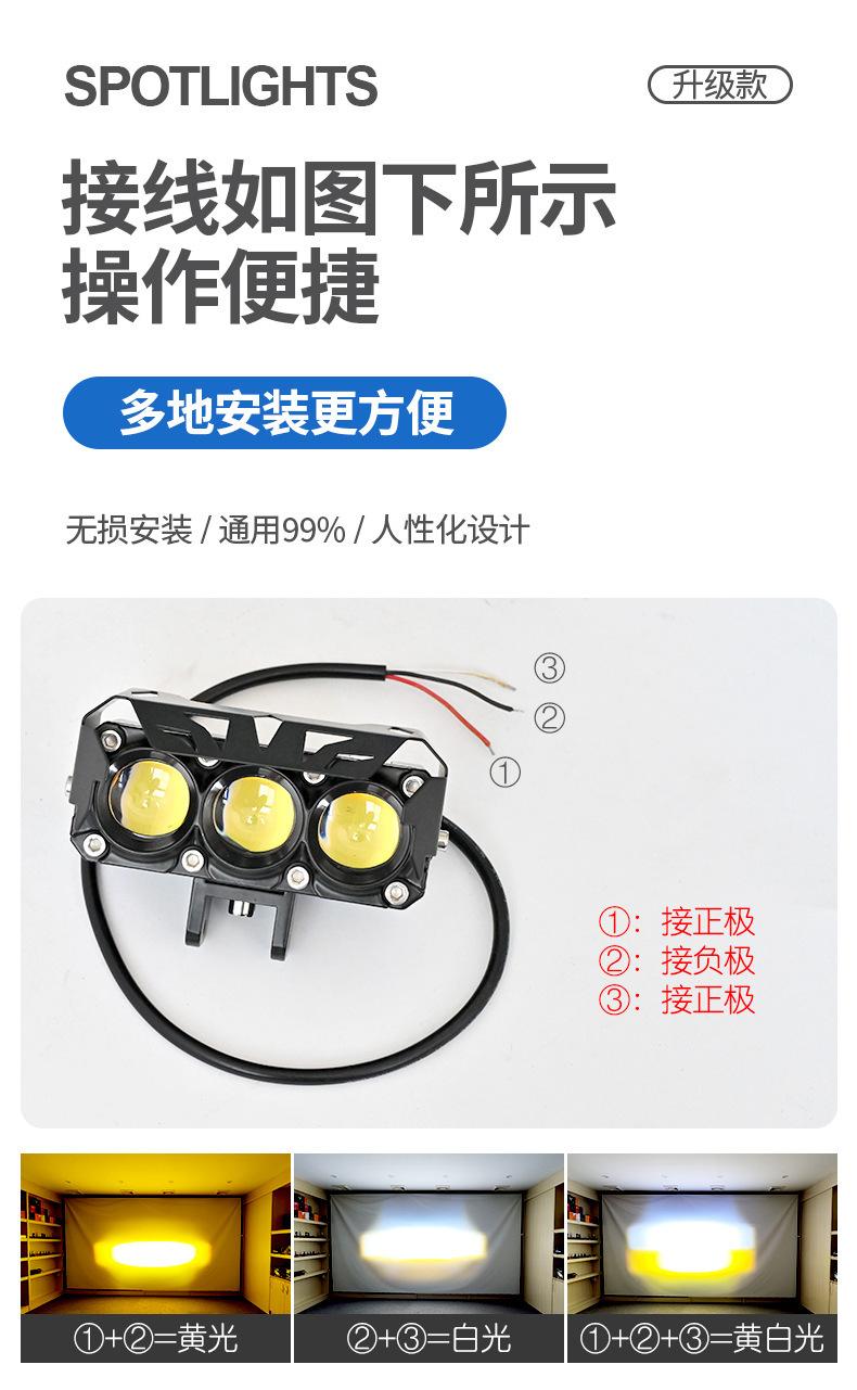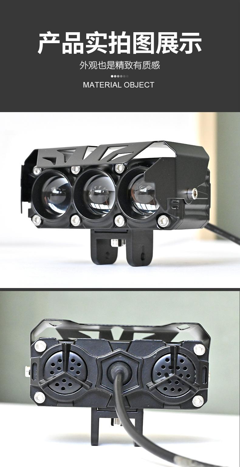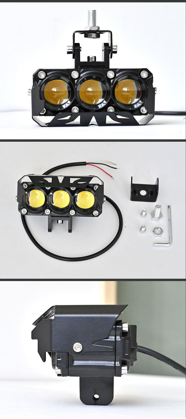 Faro LED para motocicleta 12-80V Bicolor Pequeño Cañón de Acero Faro Ojo de Pez Luz de Tres Ojos Super Brillante Modelo Modificado a Prueba de Agua