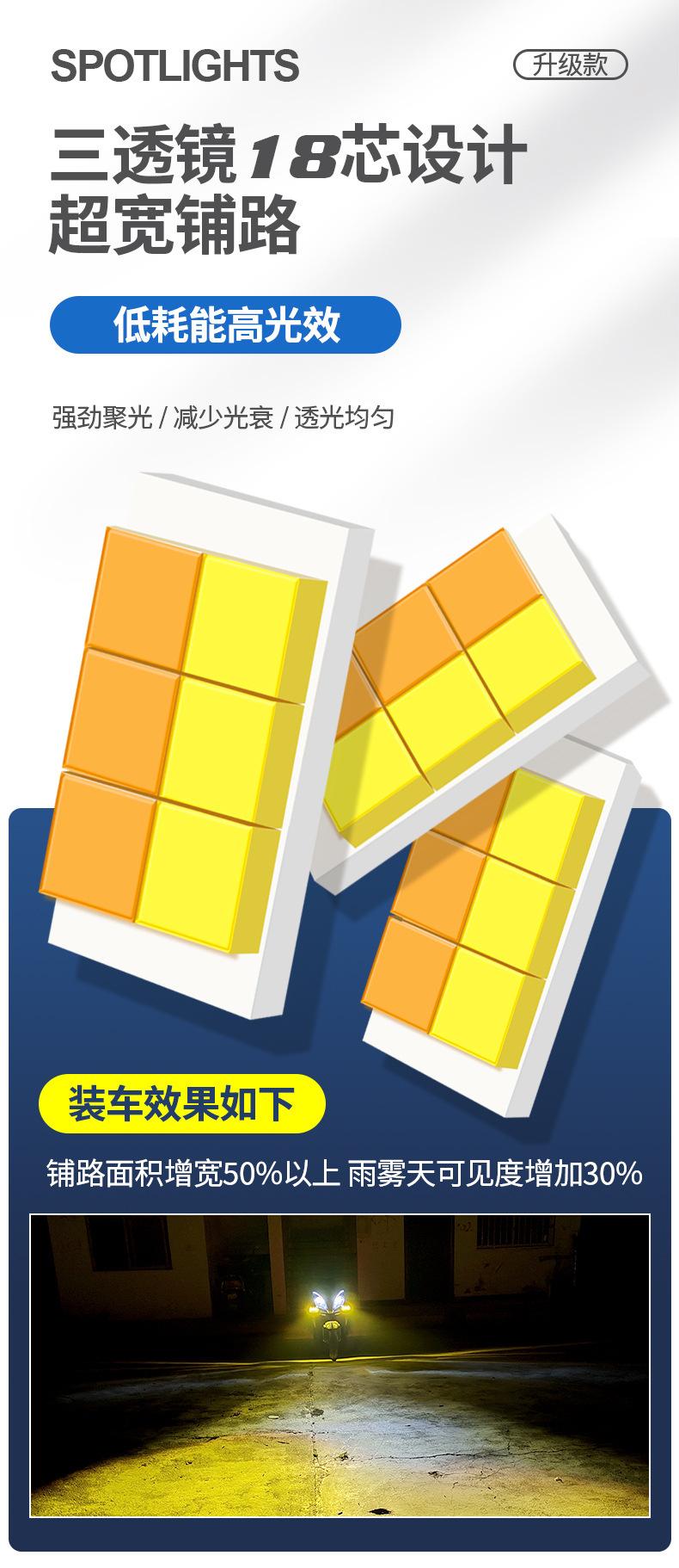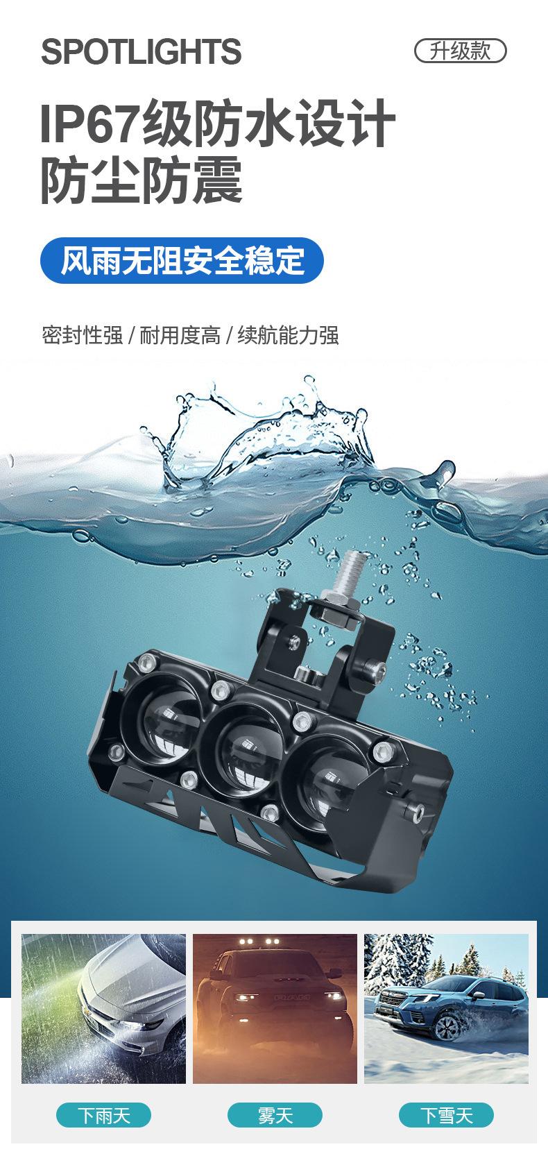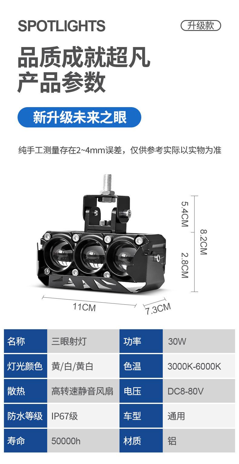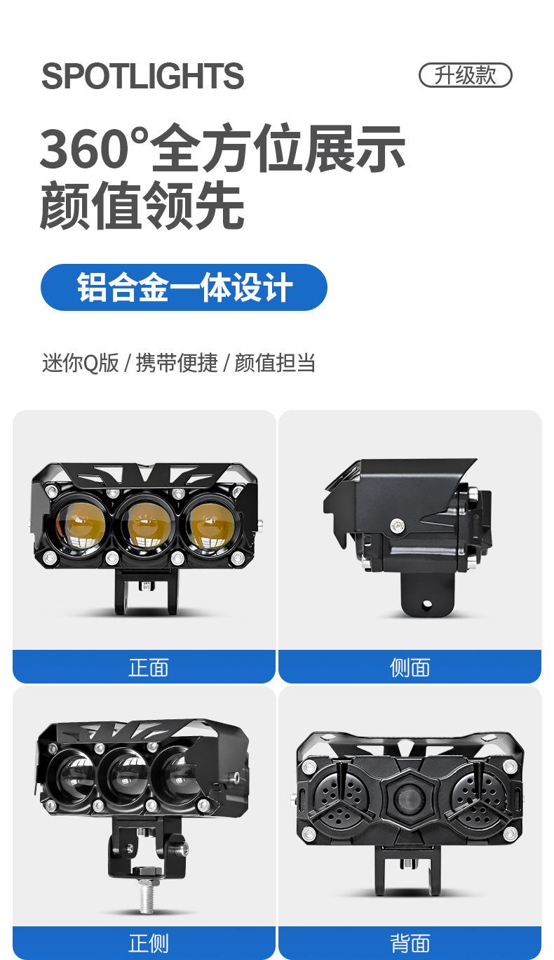 Faro LED para motocicleta 12-80V Bicolor Pequeño Cañón de Acero Faro Ojo de Pez Luz de Tres Ojos Super Brillante Modelo Modificado a Prueba de Agua