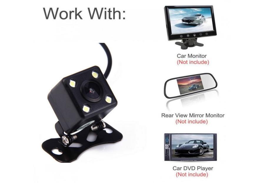 Cámara de reversa HD impermeable cuadrada de 4 LED, este precio es solo por la cámara, necesita una broca y cable de CC y cable de extensión, embalaje en caja de color, agregue otros 2.5 yuanes