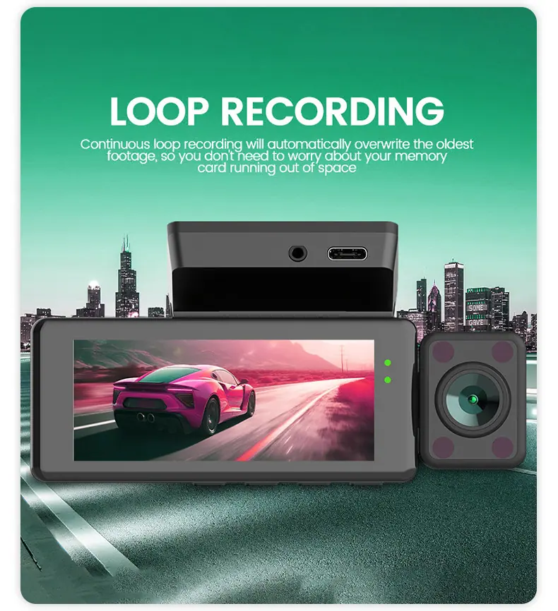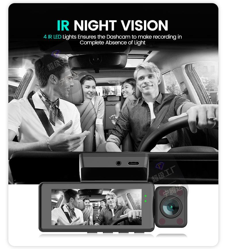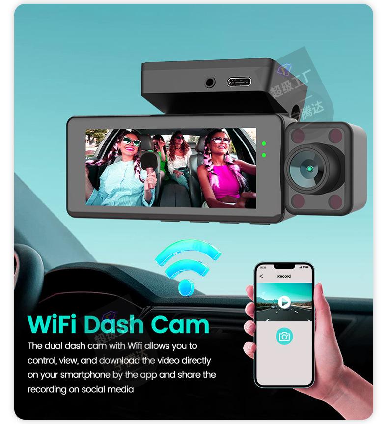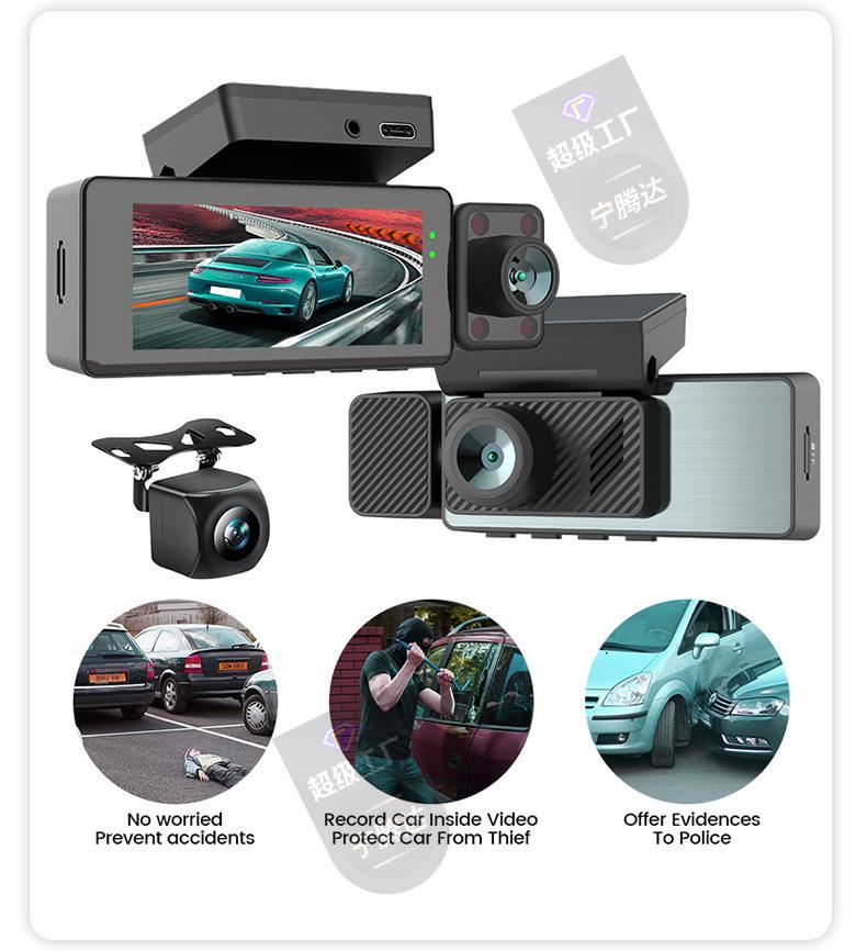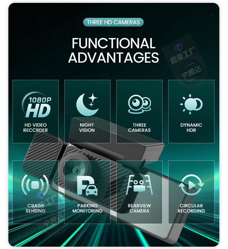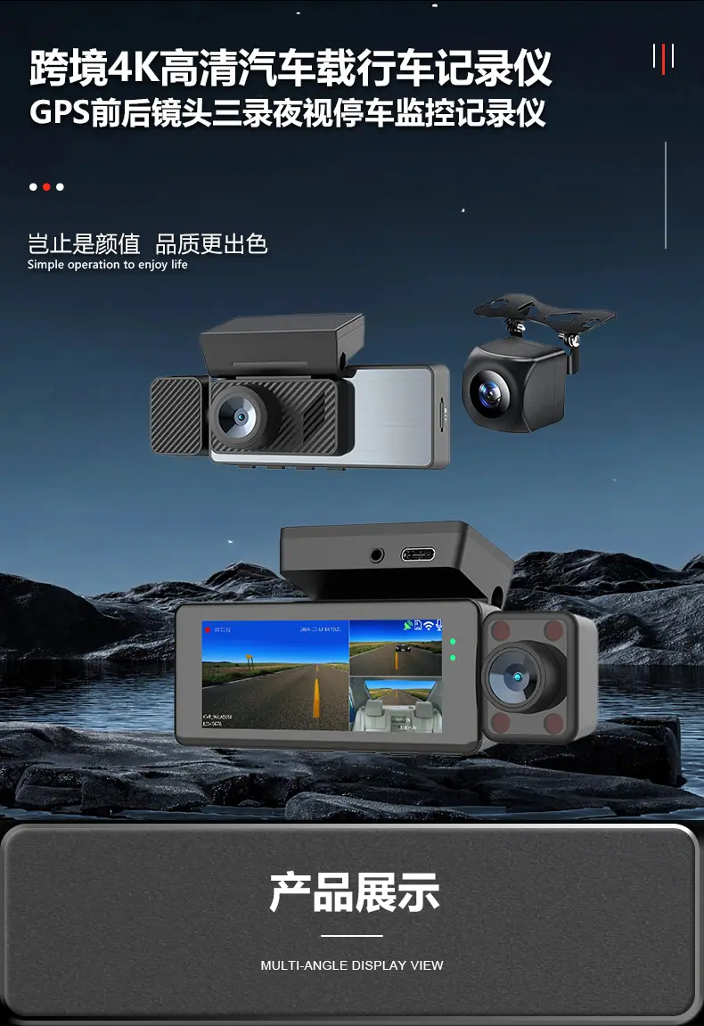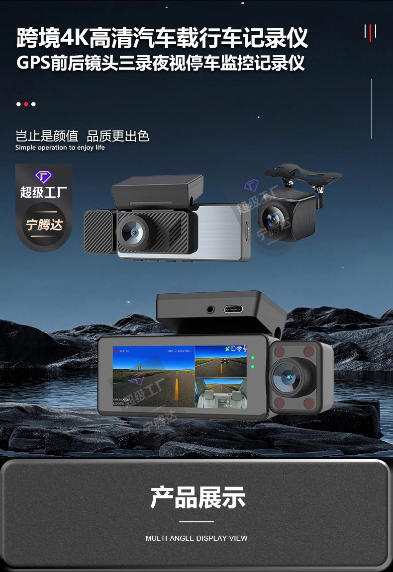 4k hd + front and rear dual recording + in-car (three recording) + gps
