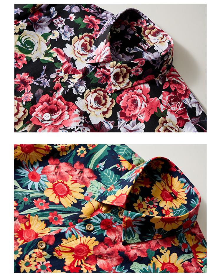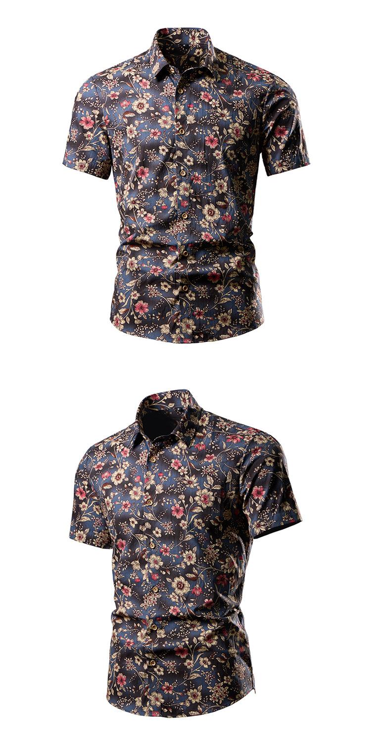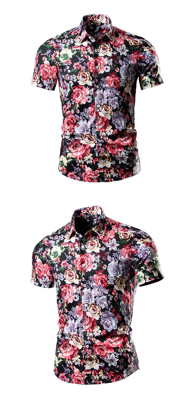 Camisa informal de manga corta con estampado floral multicolor para hombre, camisa holgada informal de talla grande, de comercio exterior de verano de 2024