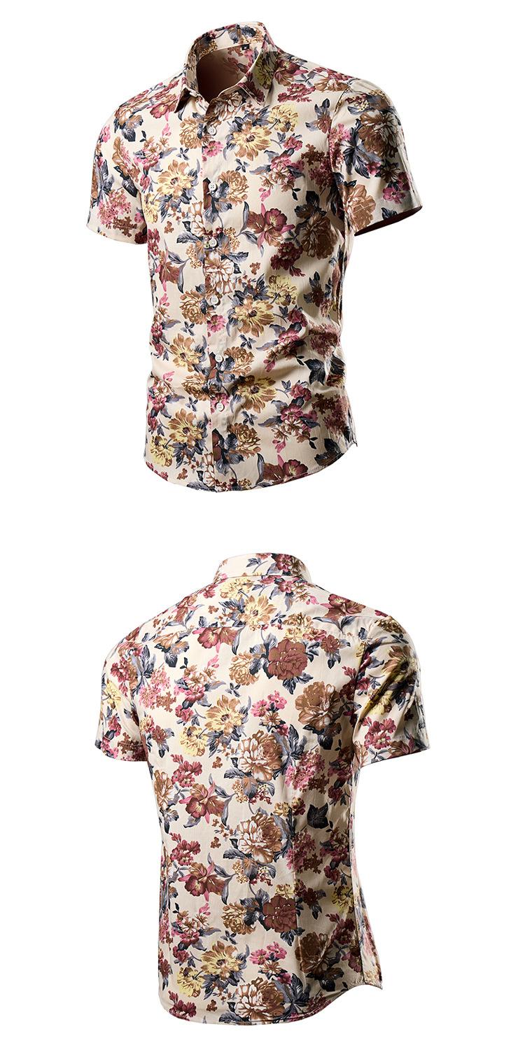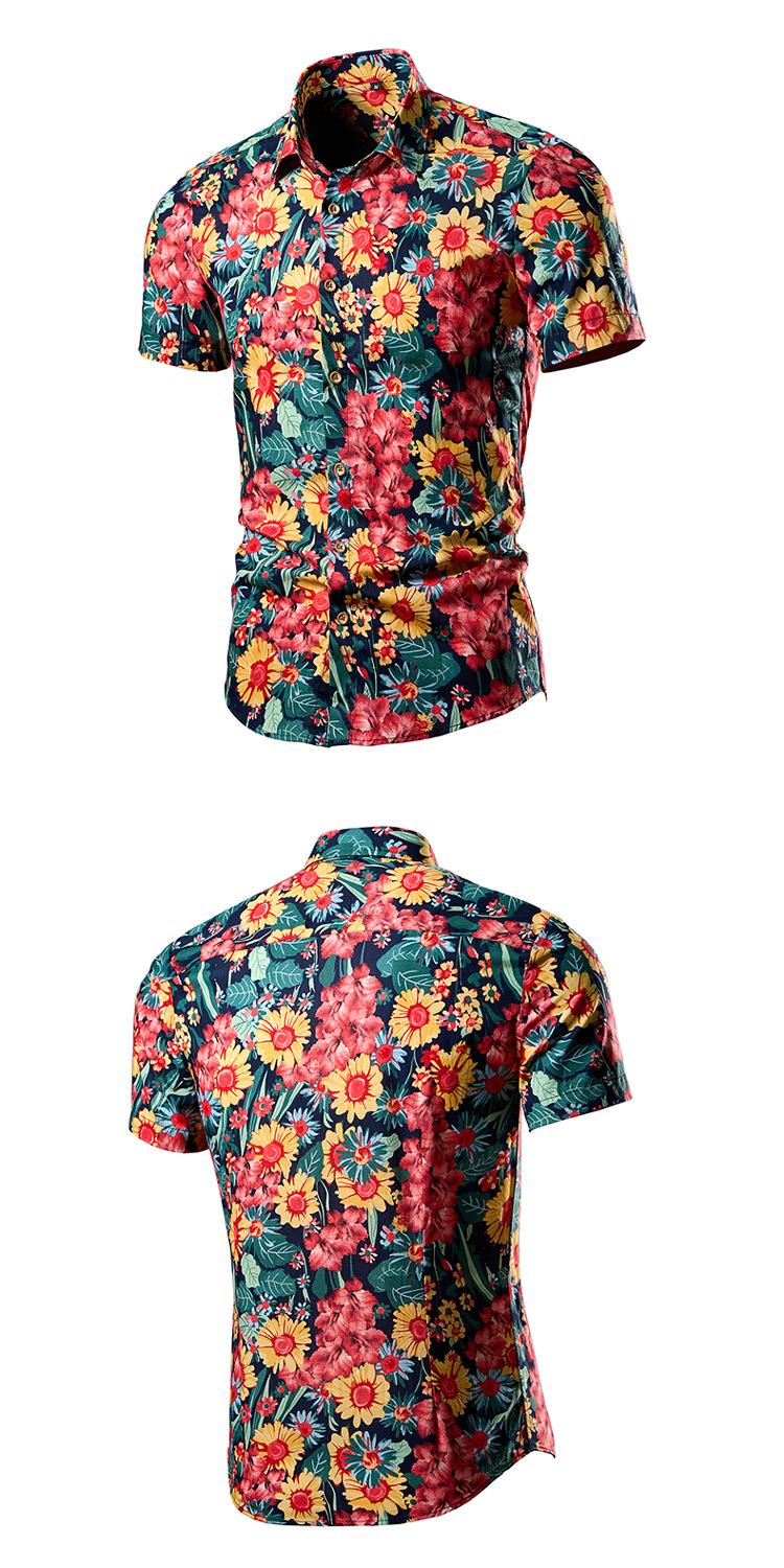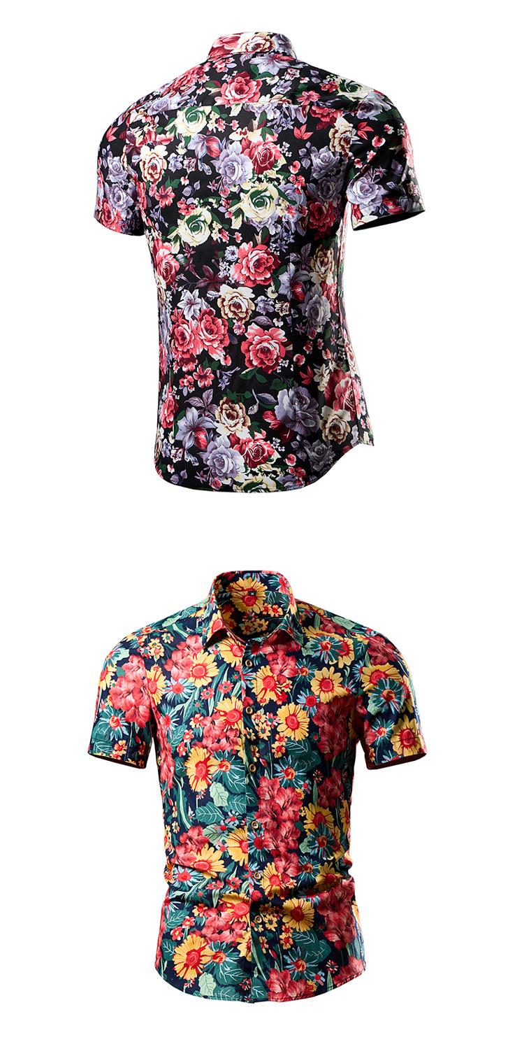 Camisa informal de manga corta con estampado floral multicolor para hombre, camisa holgada informal de talla grande, de comercio exterior de verano de 2024