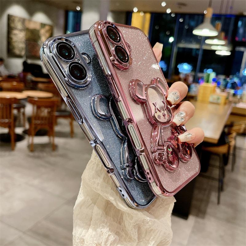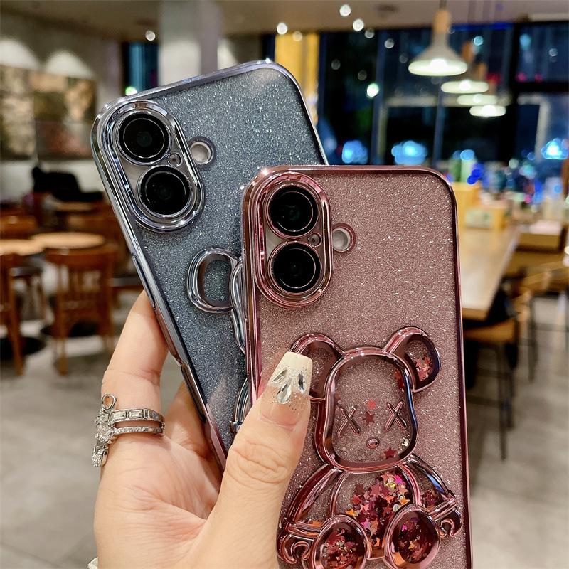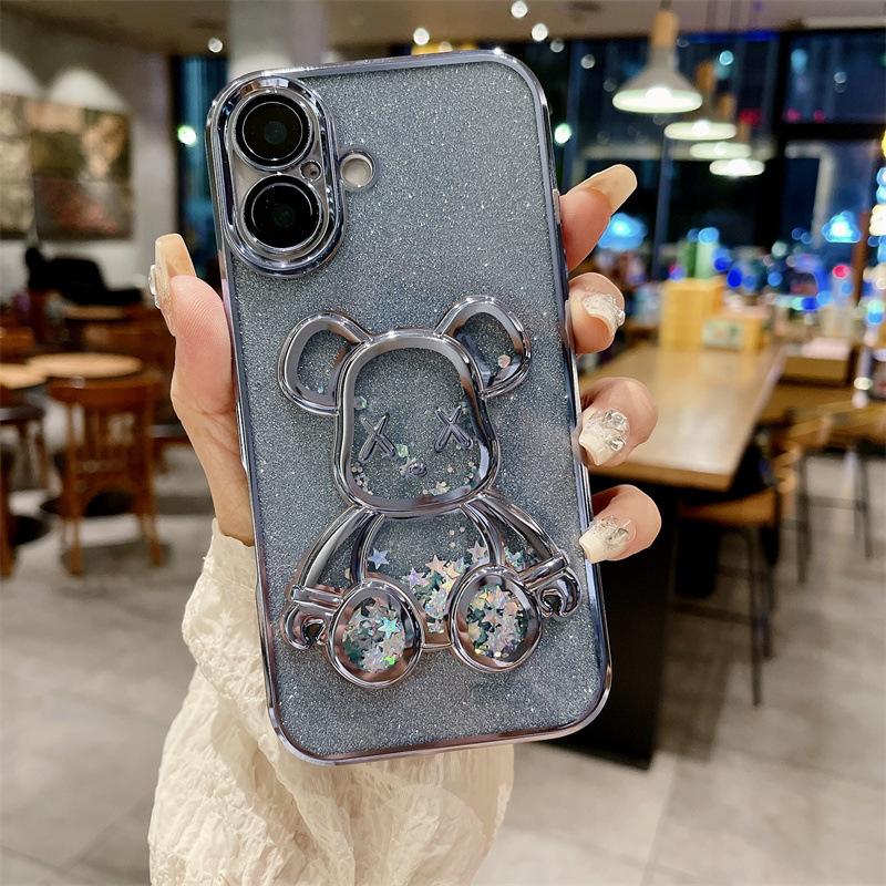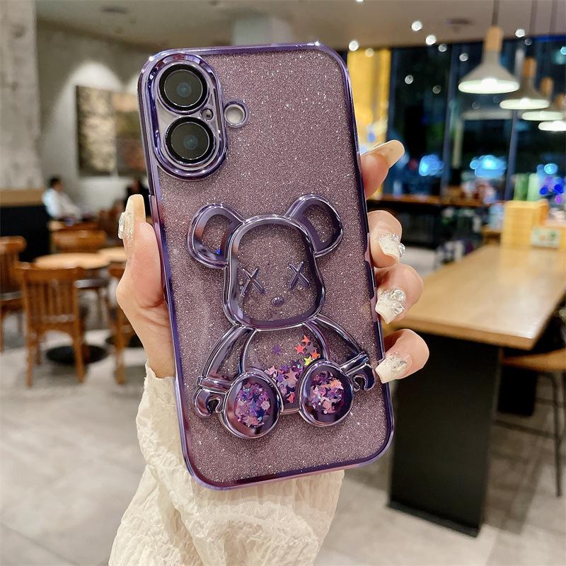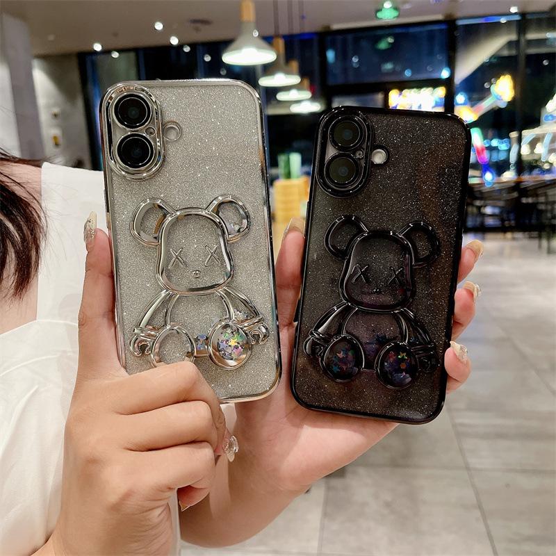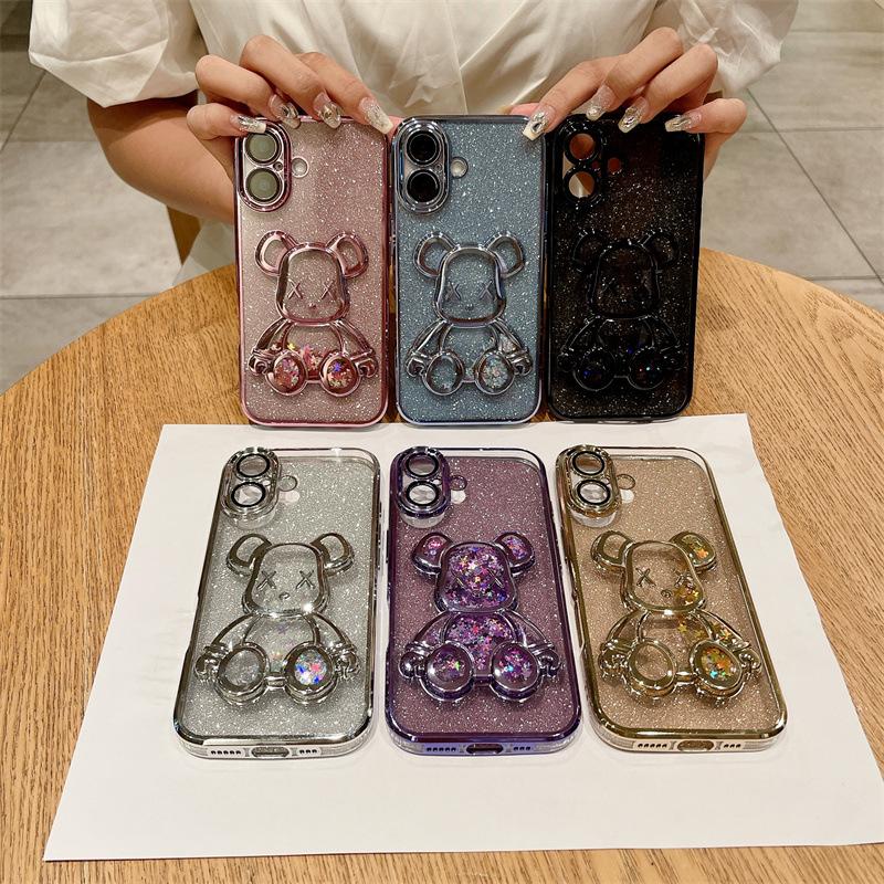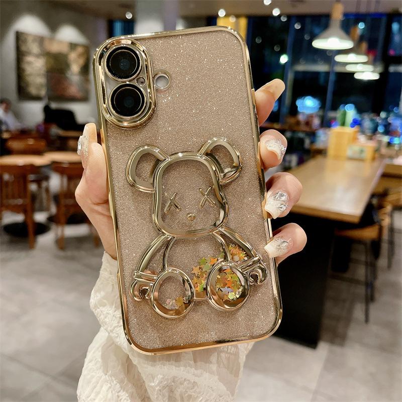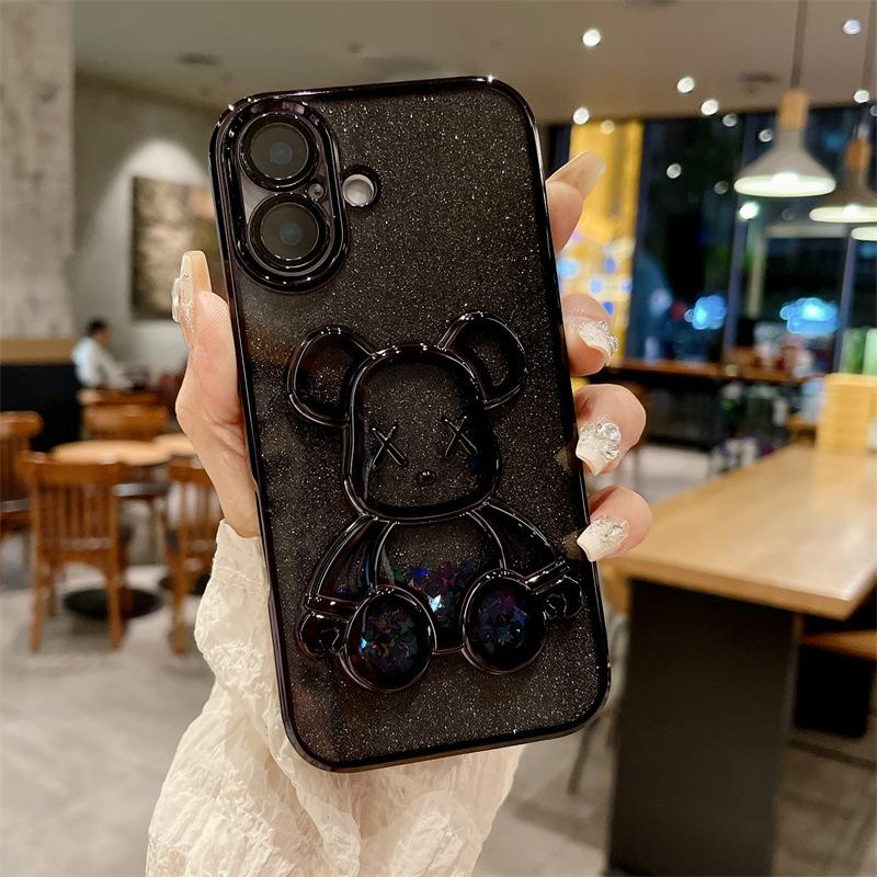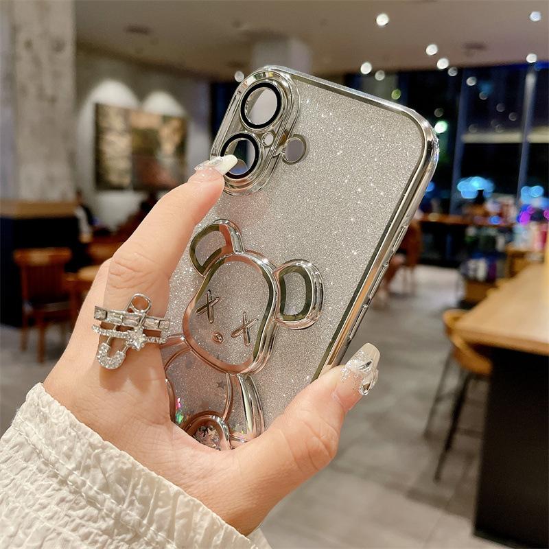 Funda para teléfono móvil Apple 16promax con diseño de oso violento y arenas movedizas para iPhone 14pro, anticaídas, 15max, con purpurina 13 suave