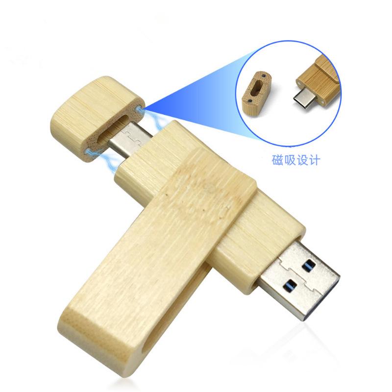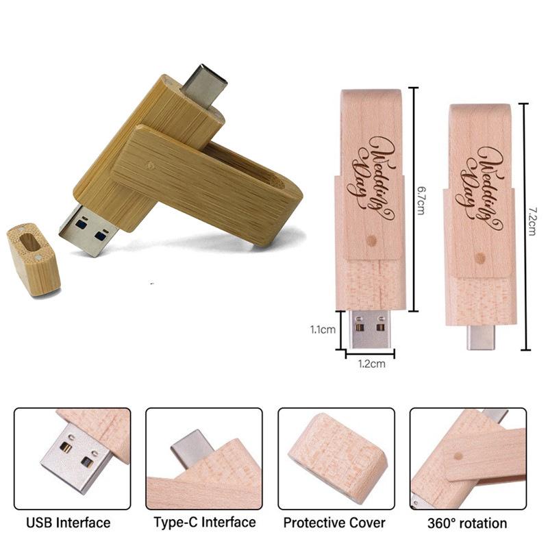 Memoria USB tipo C de 64 GB en color nogal, con logotipo imprimible.