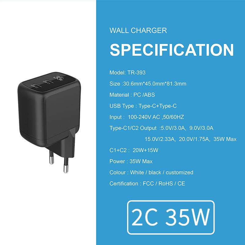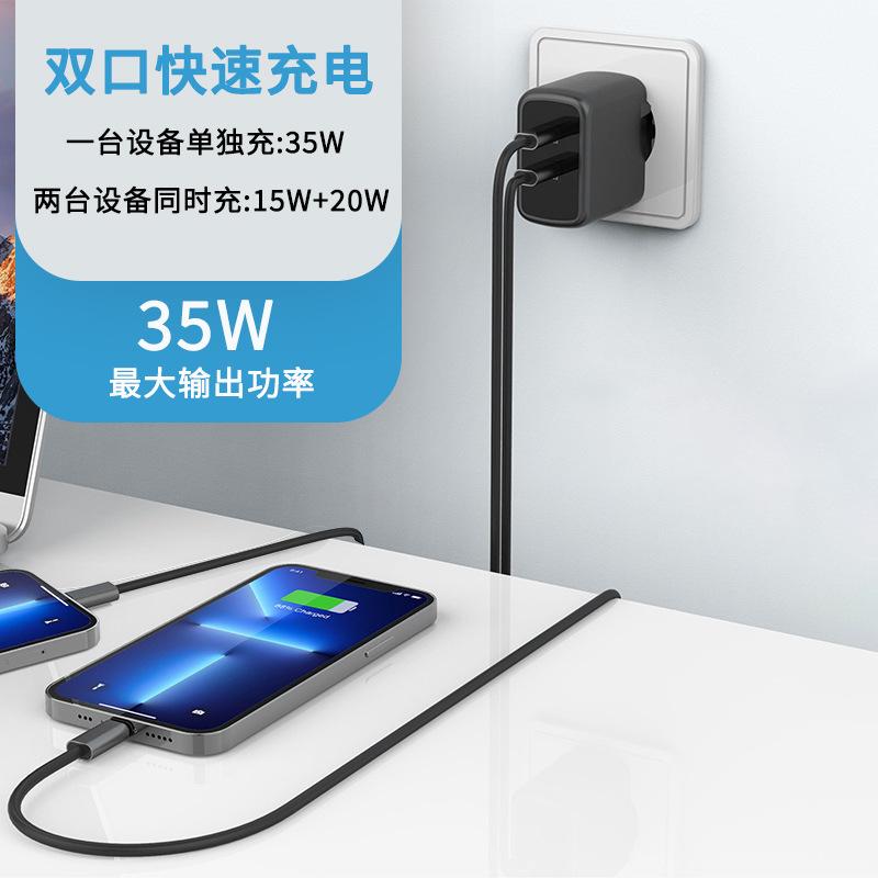 Cargador de nitruro de galio de 35 W carga rápida dual PD20W para teléfono móvil Apple 15, tableta, cargador de computadora portátil