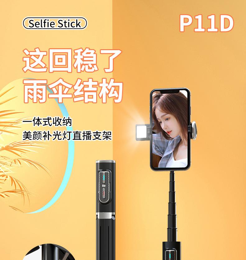 P11 All-in-One Hidden Selfie Stick/Black/No Lamp