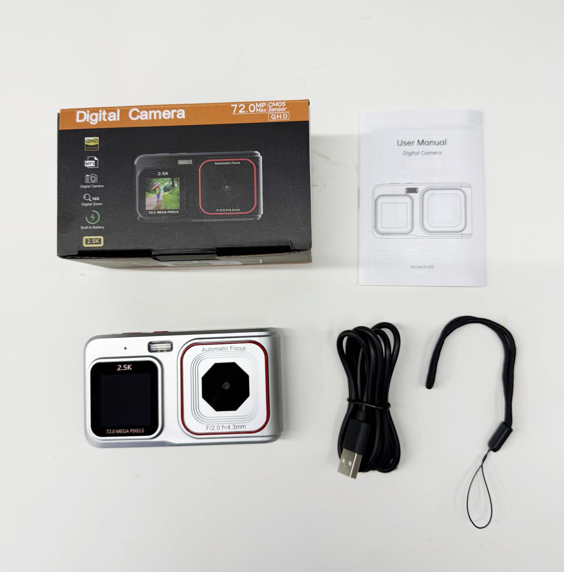 Color box, manual, data cable, data strap