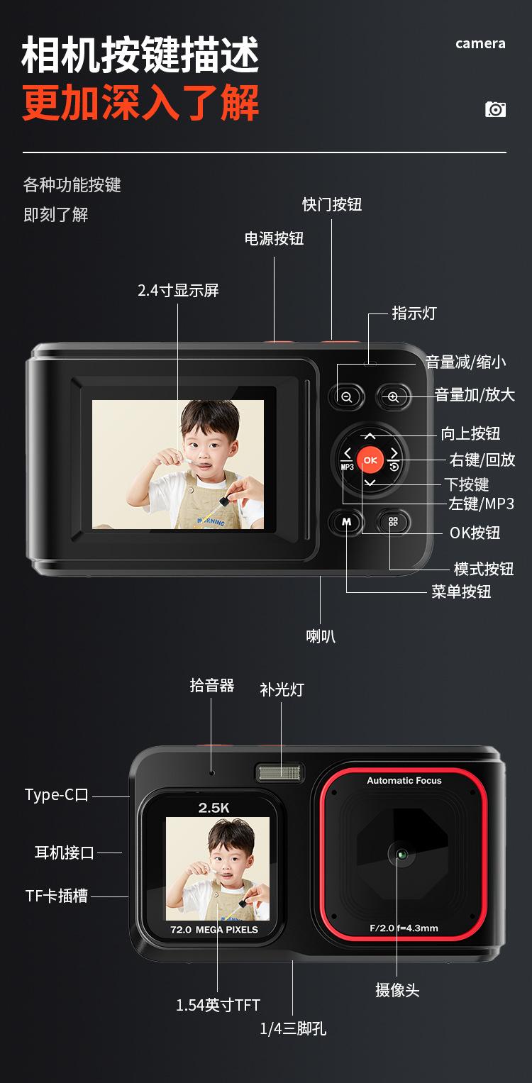 Cámara digital de doble pantalla HD con píxeles transfronterizos, cámara portátil para viajes en casa, mini cámara con tarjeta