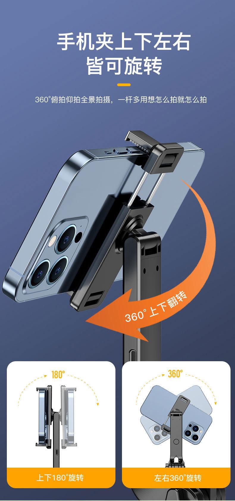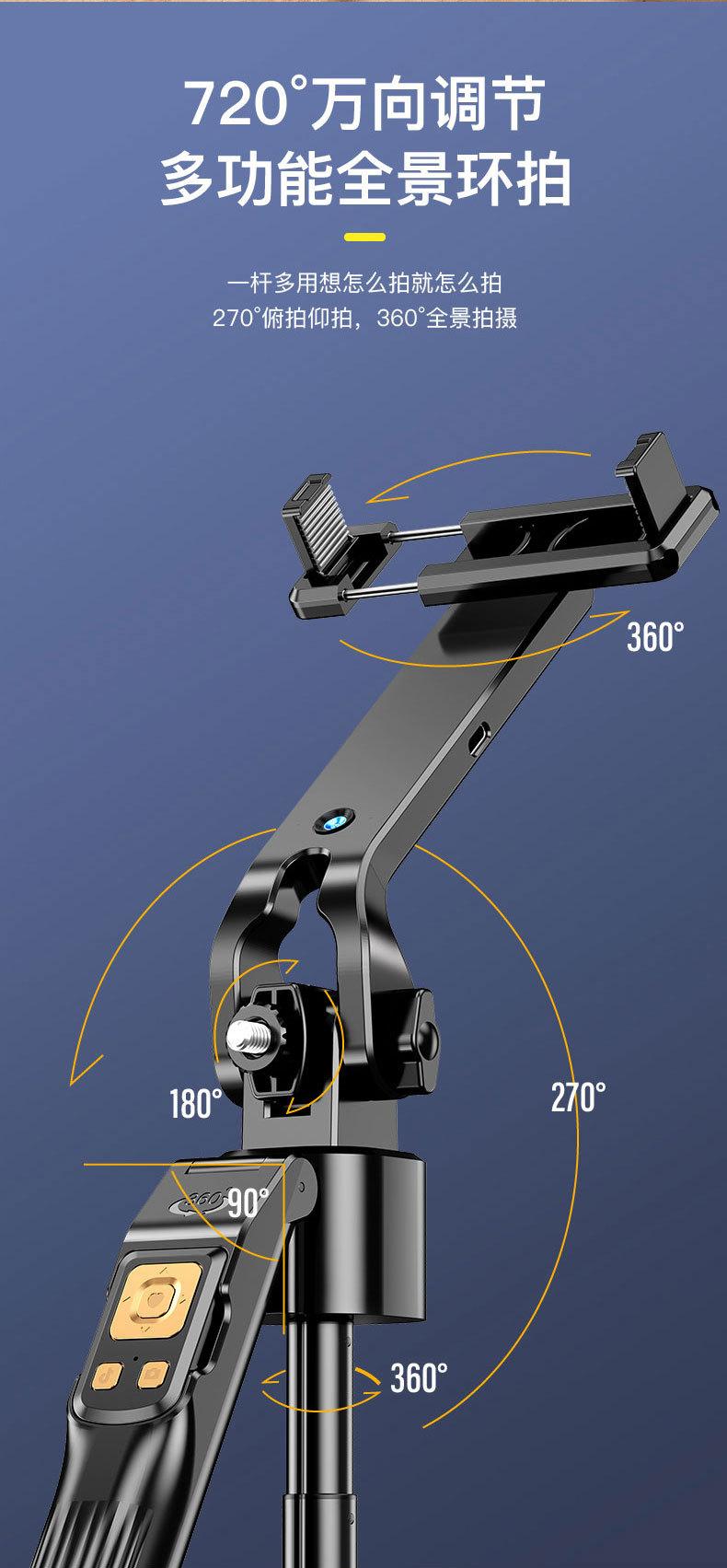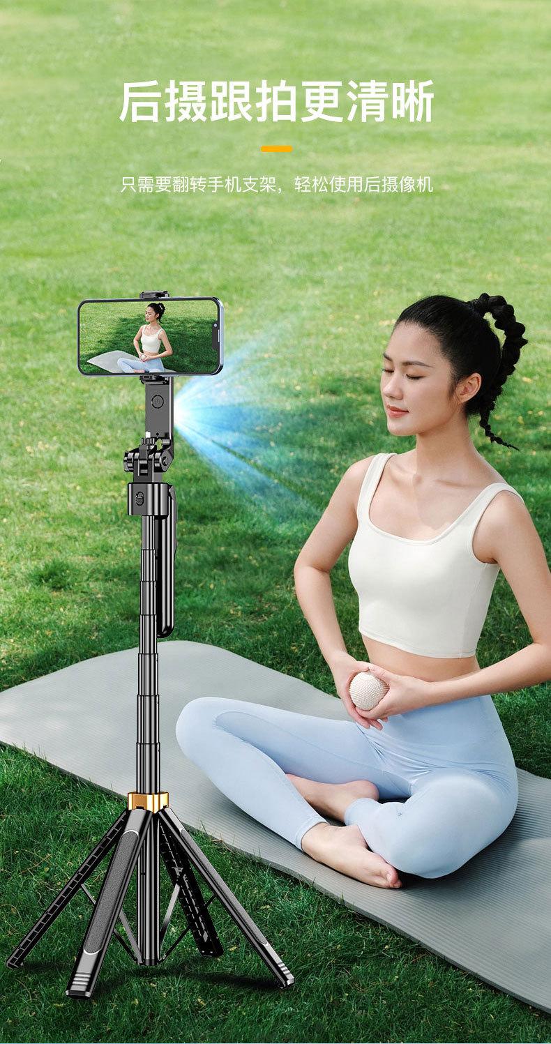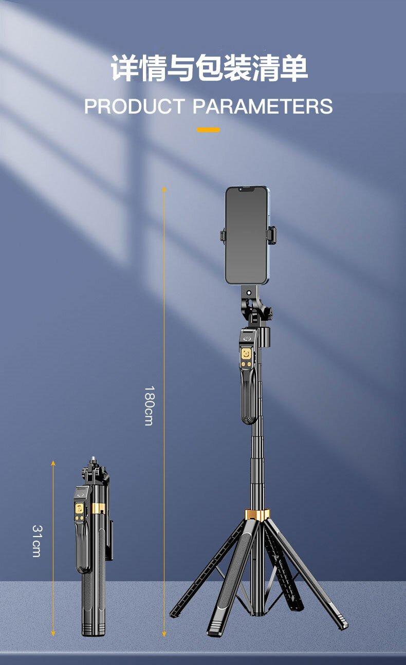 1.8m Alloy Selfie Stick [Black Double Light] 360 ° Follow shooting rotates