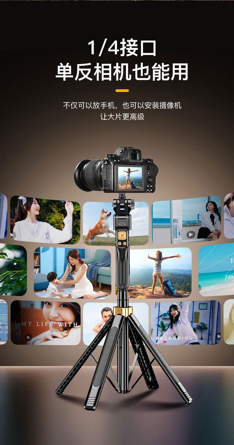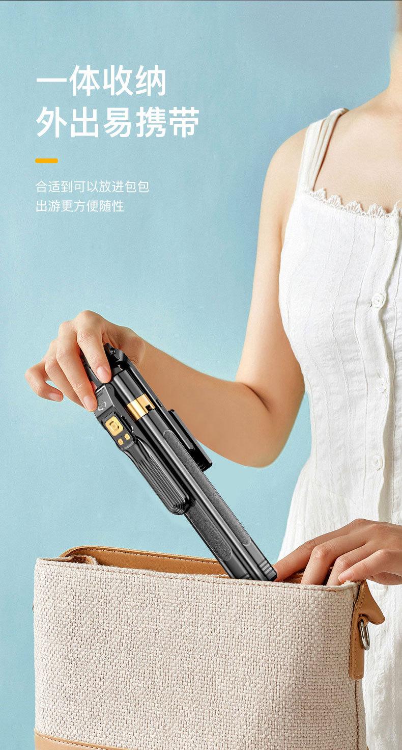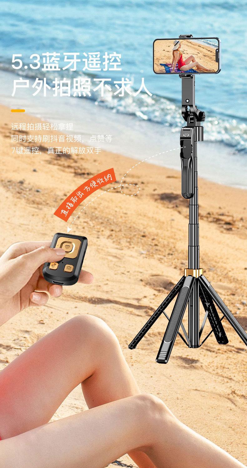 1.8m Alloy Selfie Stick [Black Double Light] 360 ° Follow shooting rotates