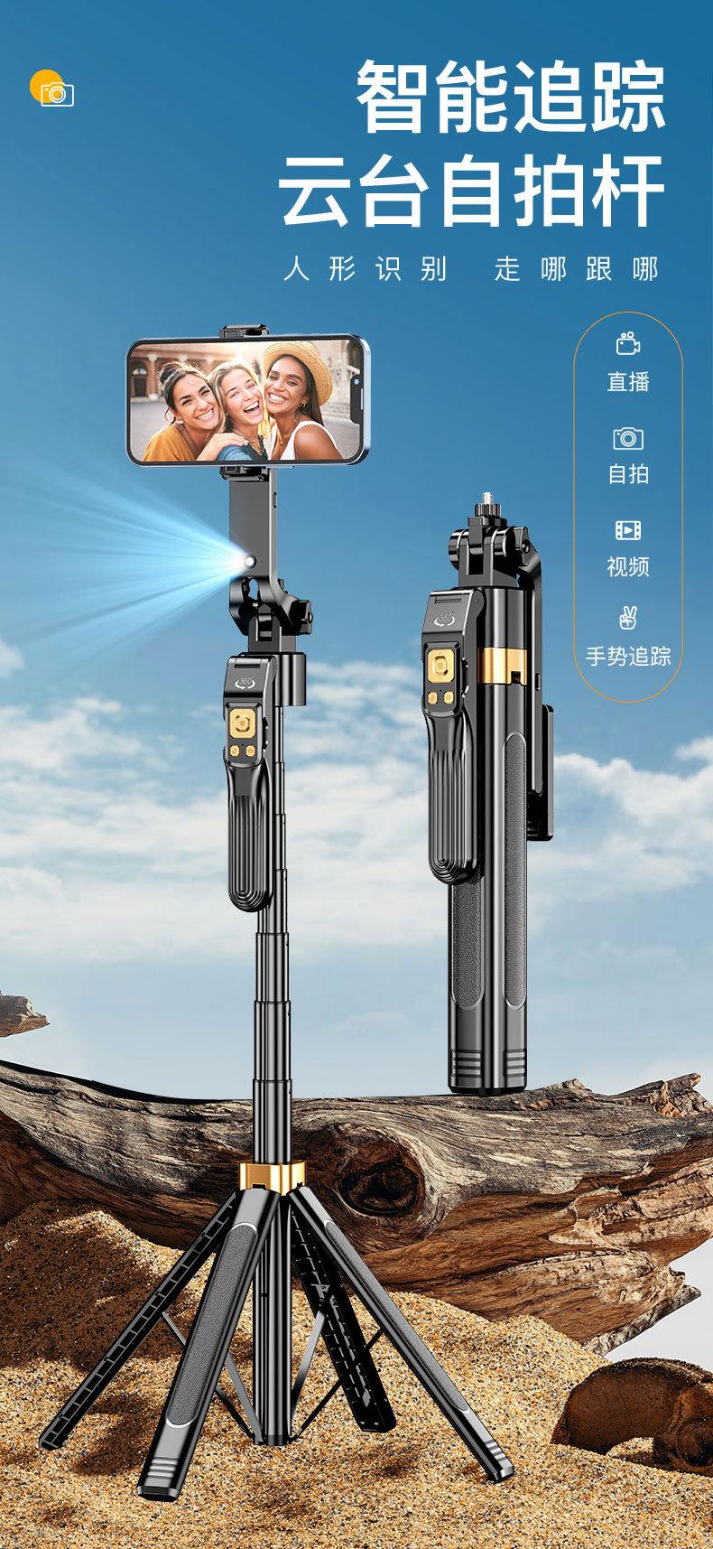 Palo selfie para teléfono móvil con paneo-inclinación, artefacto de disparo con seguimiento de 360 grados, estabilizador de cuatro ejes, fotografía selfie en vivo, multifunción.
