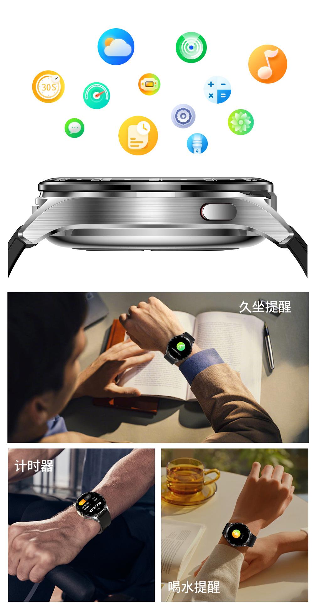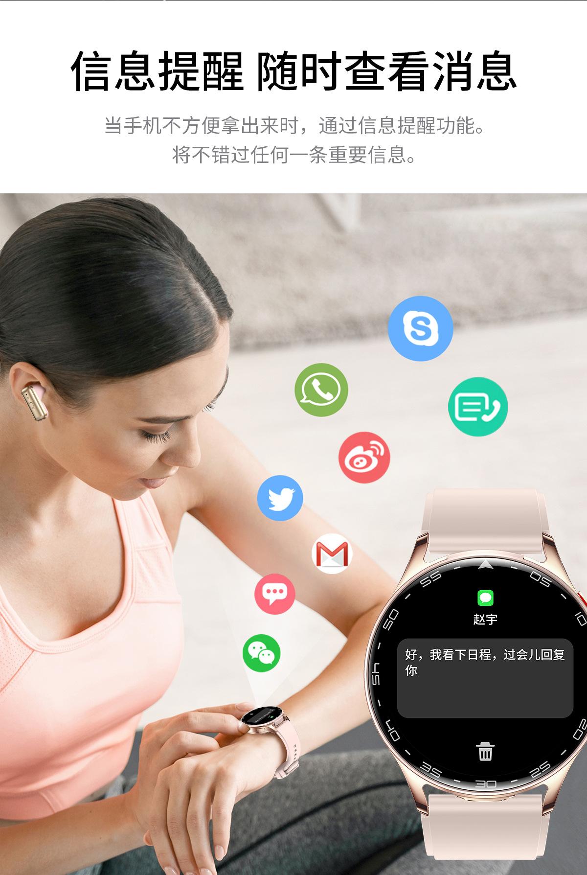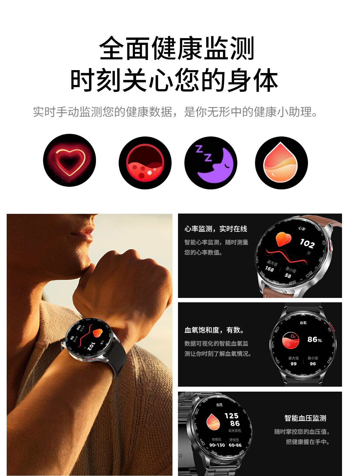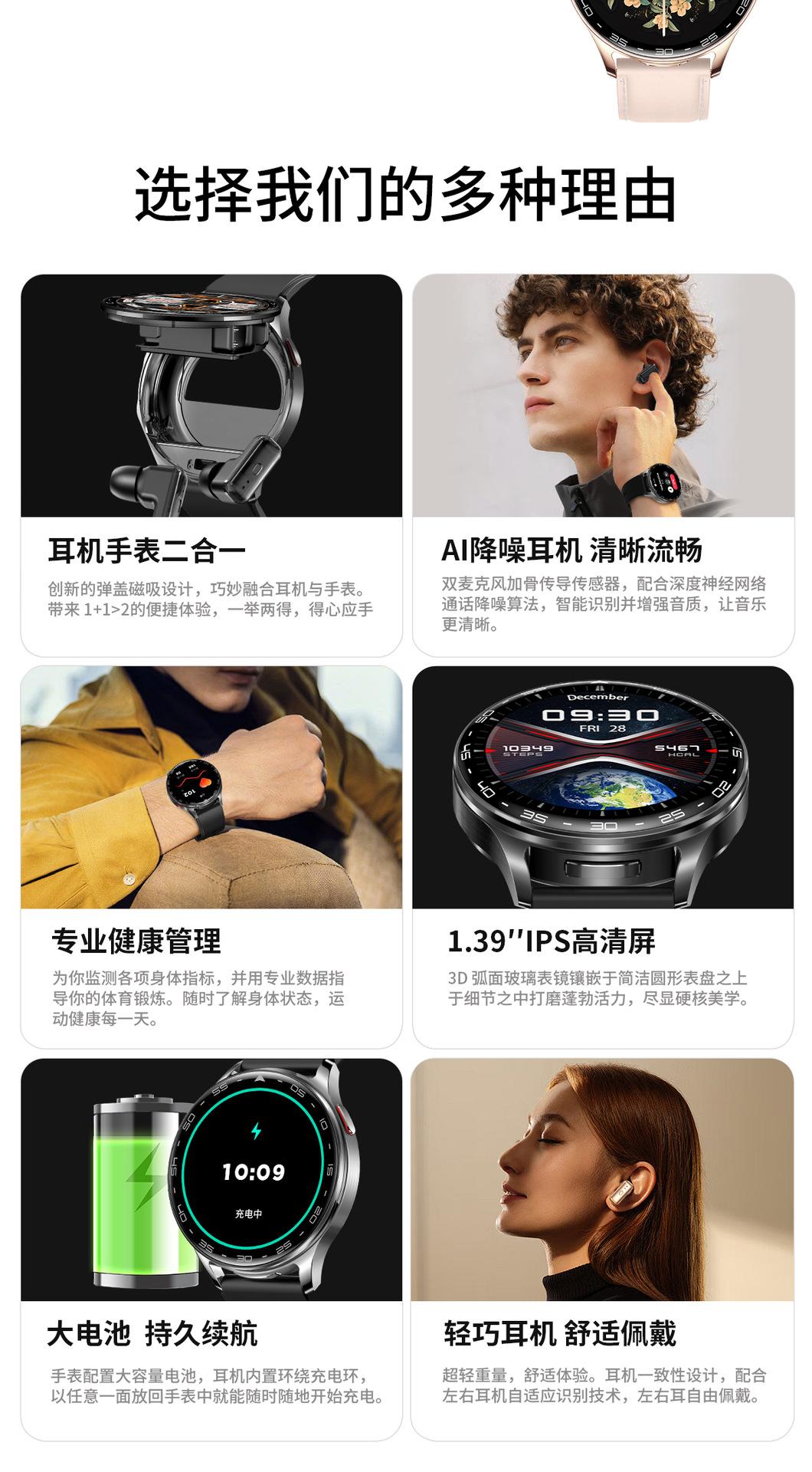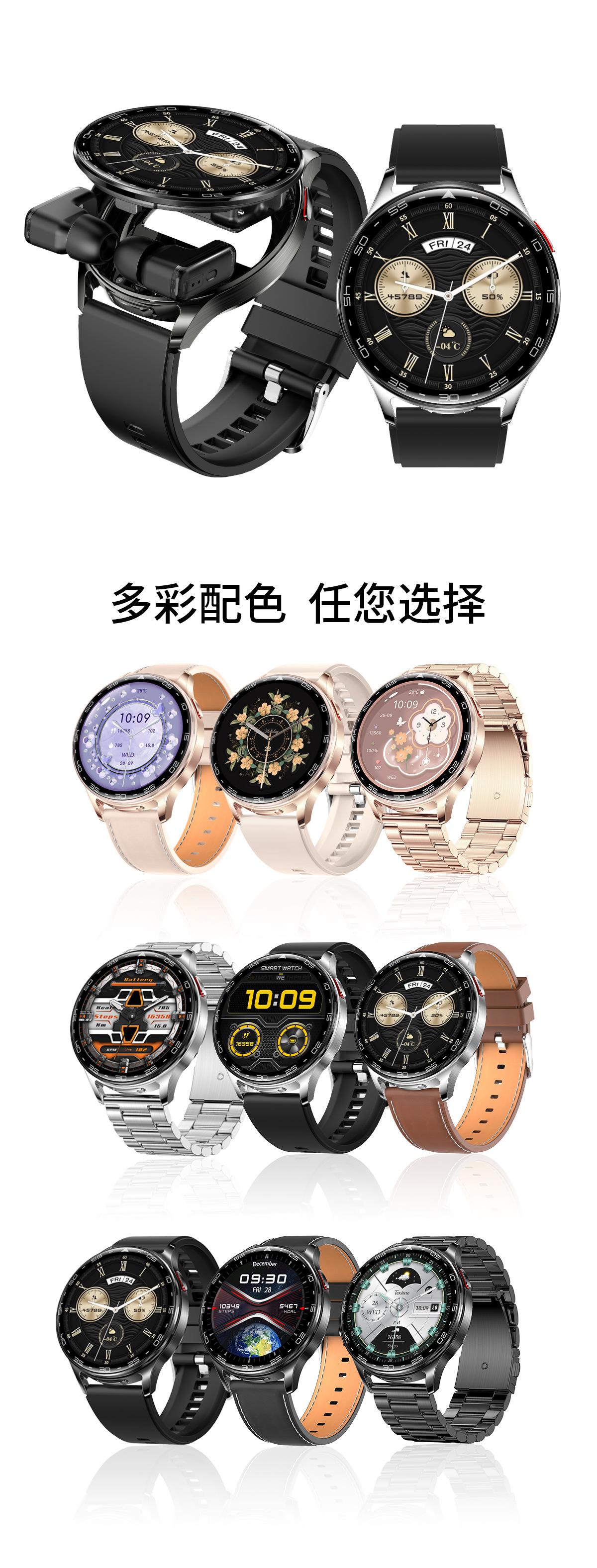 Apariencia profesional, fabricación en metal, correa deportiva de TPU de alta gama, botones táctiles y mecánicos de círculo completo, 3 configuraciones de interfaz de usuario, versión BLE5.0, batería de gran capacidad de 300 mAh, duración en espera de más de 25 días. Hasta 10 horas de sonido potente (volumen máximo) para altavoces externos. El reloj inteligente detecta con precisión la frecuencia cardíaca las 24 horas, monitoriza la presión arterial, el oxígeno en sangre, el ejercicio, el kilometraje y el consumo de calorías, recordatorios de mensajes, registro de sueño, fotografía remota, descargas gratuitas de diales y creación de diales DIY.