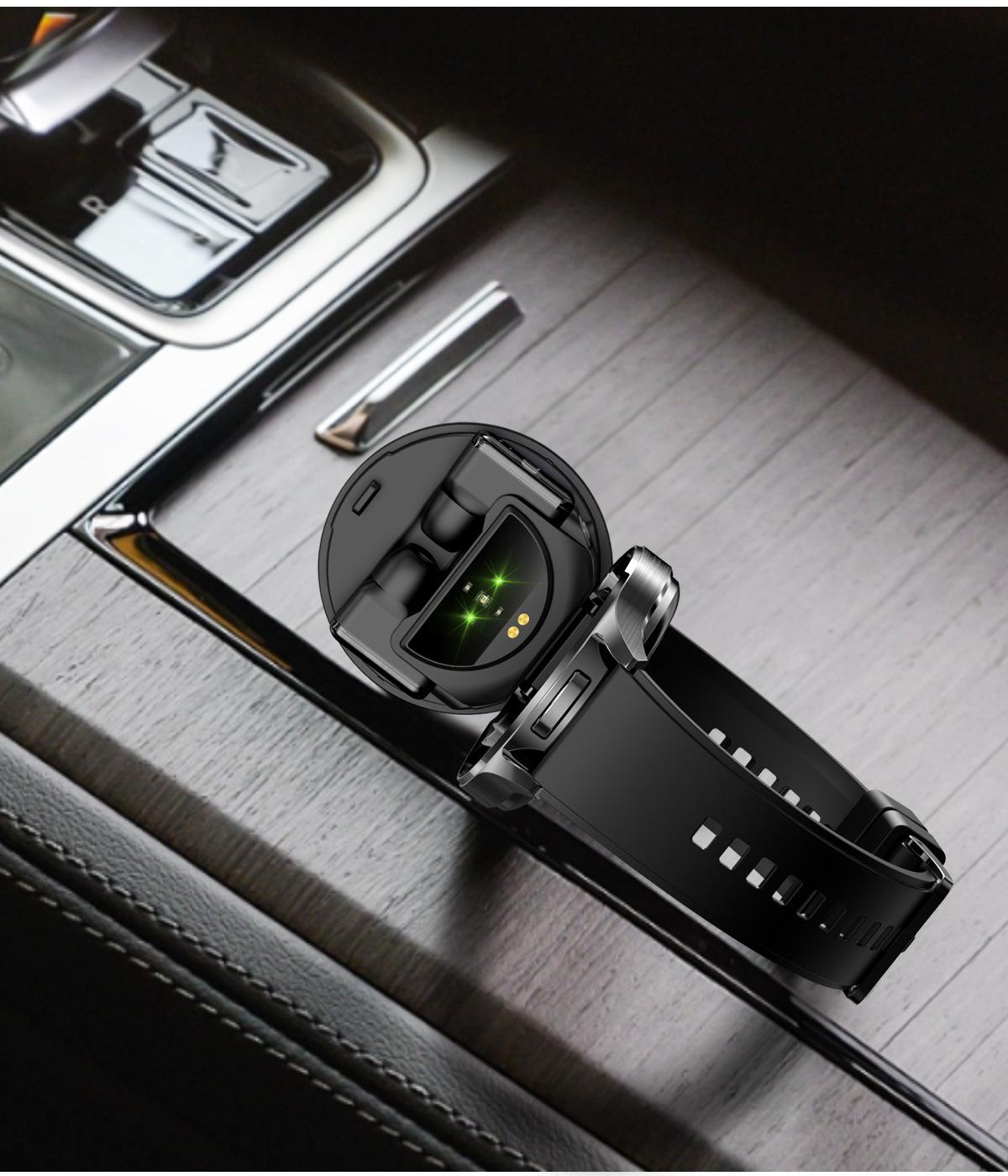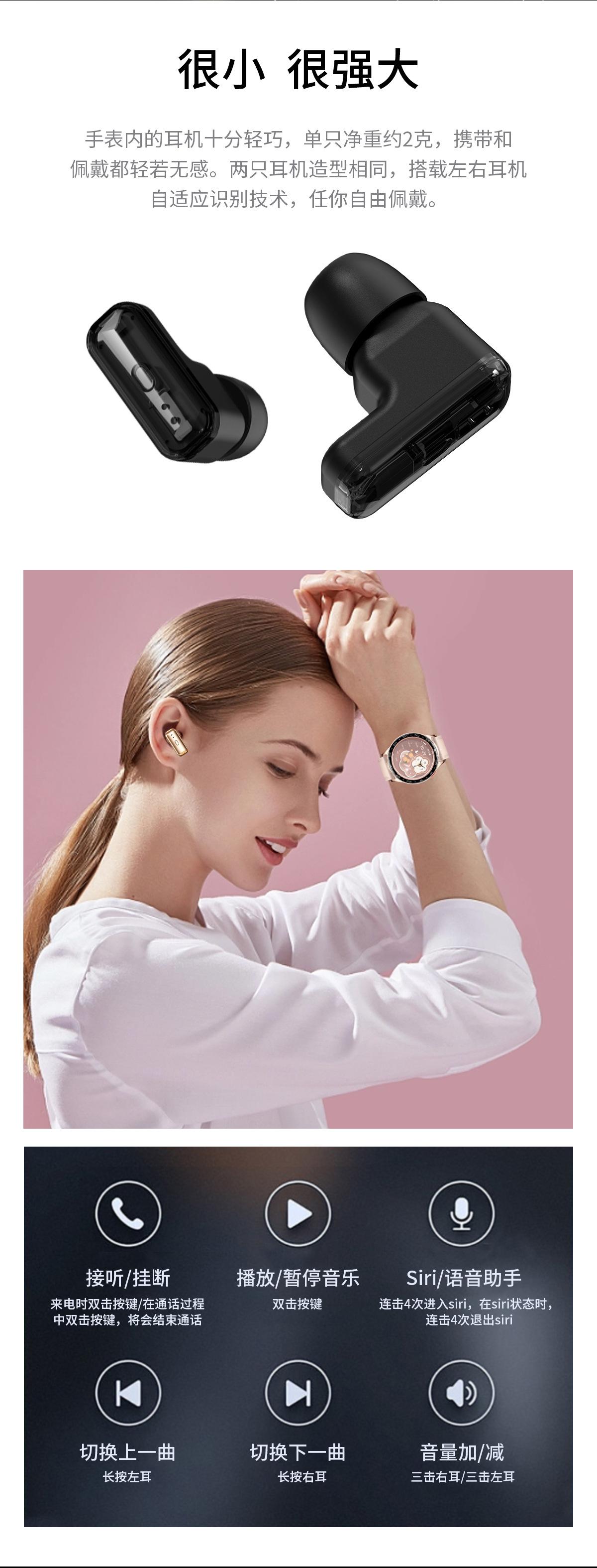 Uso totalmente intraaural, indoloro y cómodo. Fabricación en metal, calidad de sonido impecable, diseño de asa, reducción de ruido bidireccional, llamadas más nítidas, con el estable transmisor dual Zhongke Bluexun (AB5656A2) de alta calidad, independientemente del maestro y el esclavo, señal Bluetooth superpotente: alcance de 25 metros en espacios abiertos y 15 metros a través de paredes. Bluetooth dual 5.0 integrado, calidad de sonido HIFI 9D, sensor táctil y activación por voz con IA y SIRI. Los auriculares se cargan en el compartimento del reloj y se pueden usar en cualquier momento. Son fáciles de guardar en el compartimento del reloj y se cargan en el mismo.
