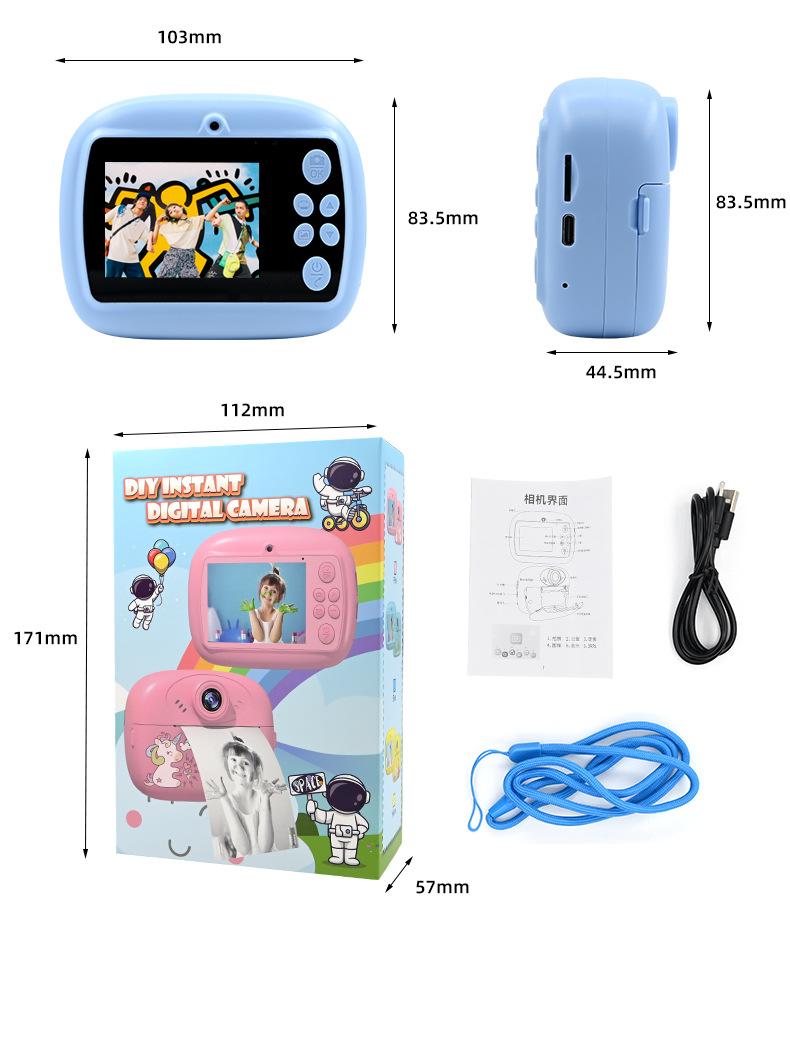 Camera, manual, color box, lanyard, data cable, printing paper, color pen