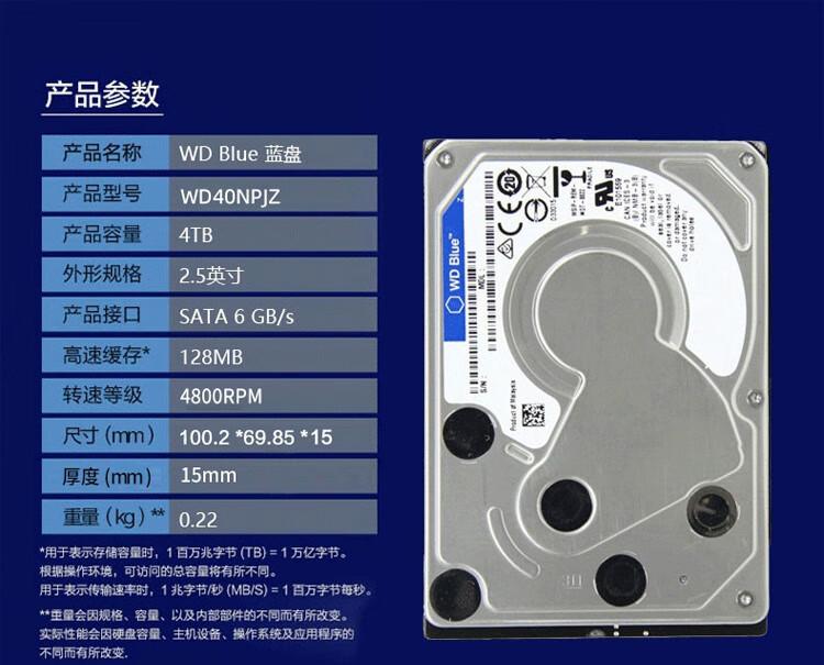 Wd40Npjz 4Tb 2.5 pulgadas 15mm Azul Azul Disco Sata 128m 480