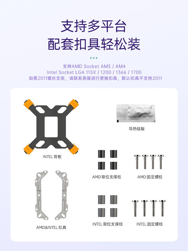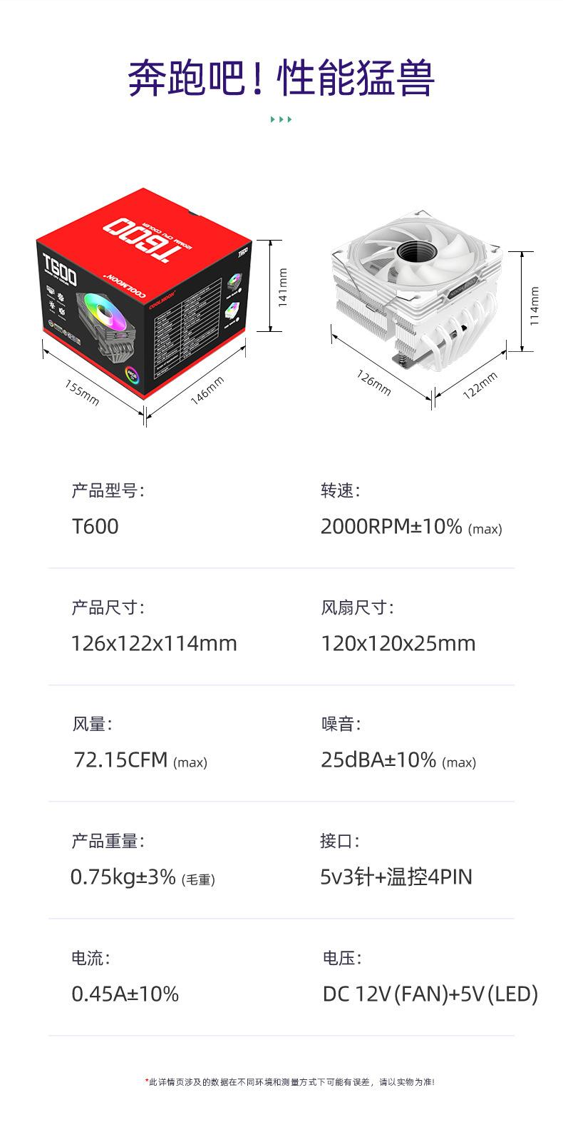 El radiador T600 utiliza un ventilador con rodamiento FDB, un diseño de refrigeración de seis tubos de cobre con presión descendente, luz fría ARGB, admite control inteligente de temperatura y regulación de velocidad, y está empaquetado en una caja de producto individual. Tiene espuma incorporada para proteger altamente el radiador. Hay 16 piezas por caja, y el tamaño de una sola caja es 61*32.5*31.5cm. Pesamos 12.6kg por caja. Enviamos directamente desde la fábrica y apoyamos las ventas transfronterizas. Podemos proporcionar autorización y paquetes de imágenes. Para más información, ¡por favor contacte al servicio al cliente!