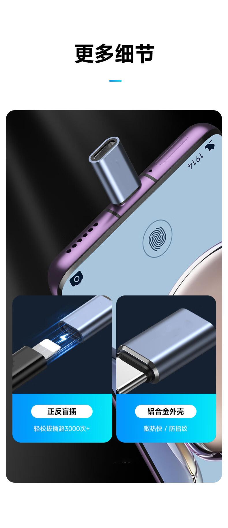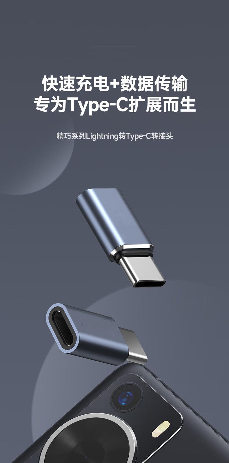 Adecuado para adaptador de teléfono móvil Apple 15, convertidor de transmisión de carga de iluminación hembra a macho tipo C.