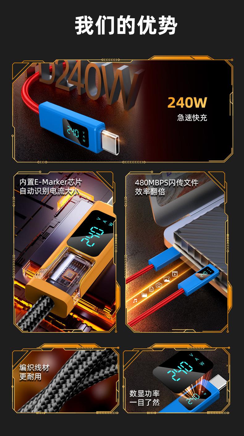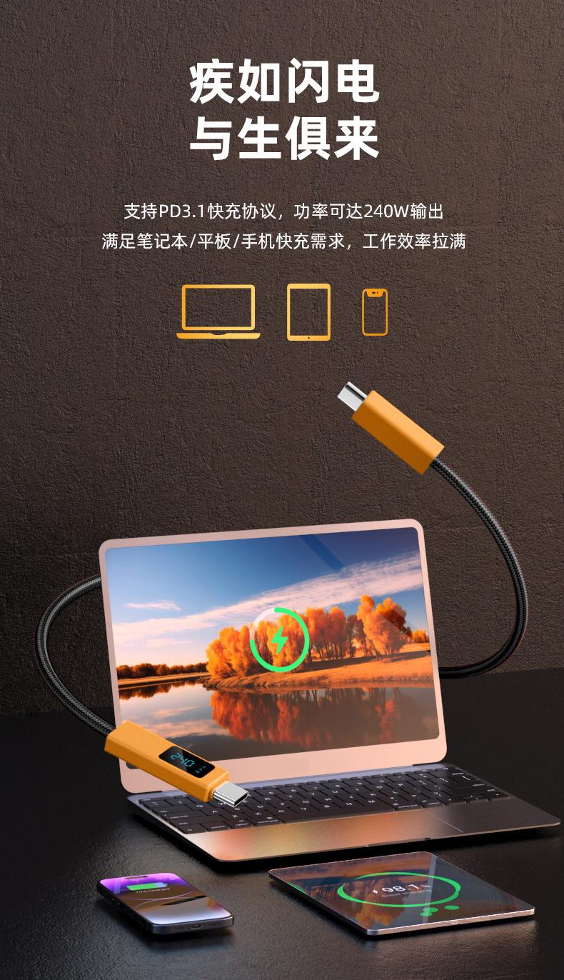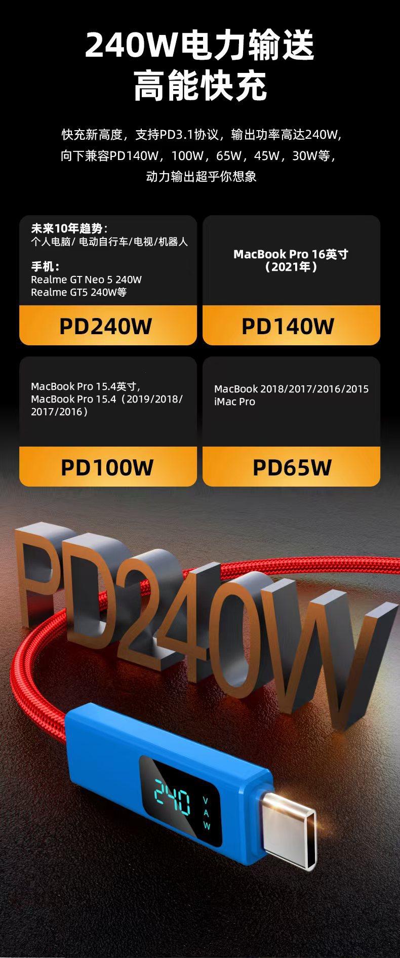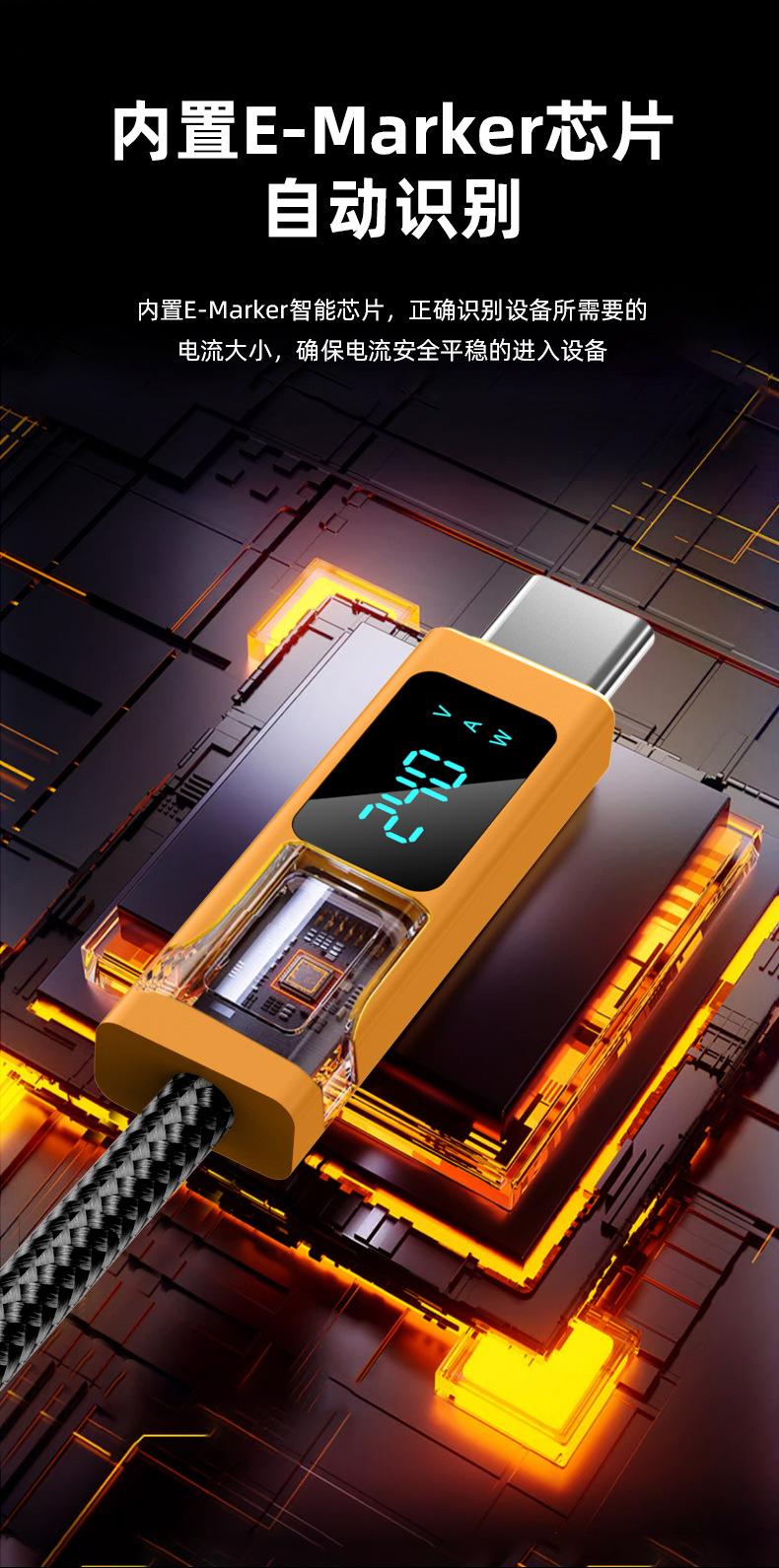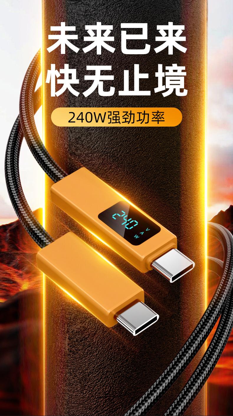 En Stock Pantalla Digital 240W Cable de Datos Tipo-C a Tipo-C Específico para Laptop Chip E-Maker Cable de Carga Rápida Trenzado