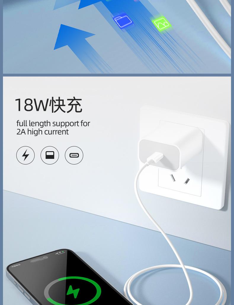 Compra Adecuado para teléfono móvil Apple 14, línea de datos de carga rápida tipo C a línea de carga de interfaz de iluminación 18 W 2 A al por mayor en Joom.pro