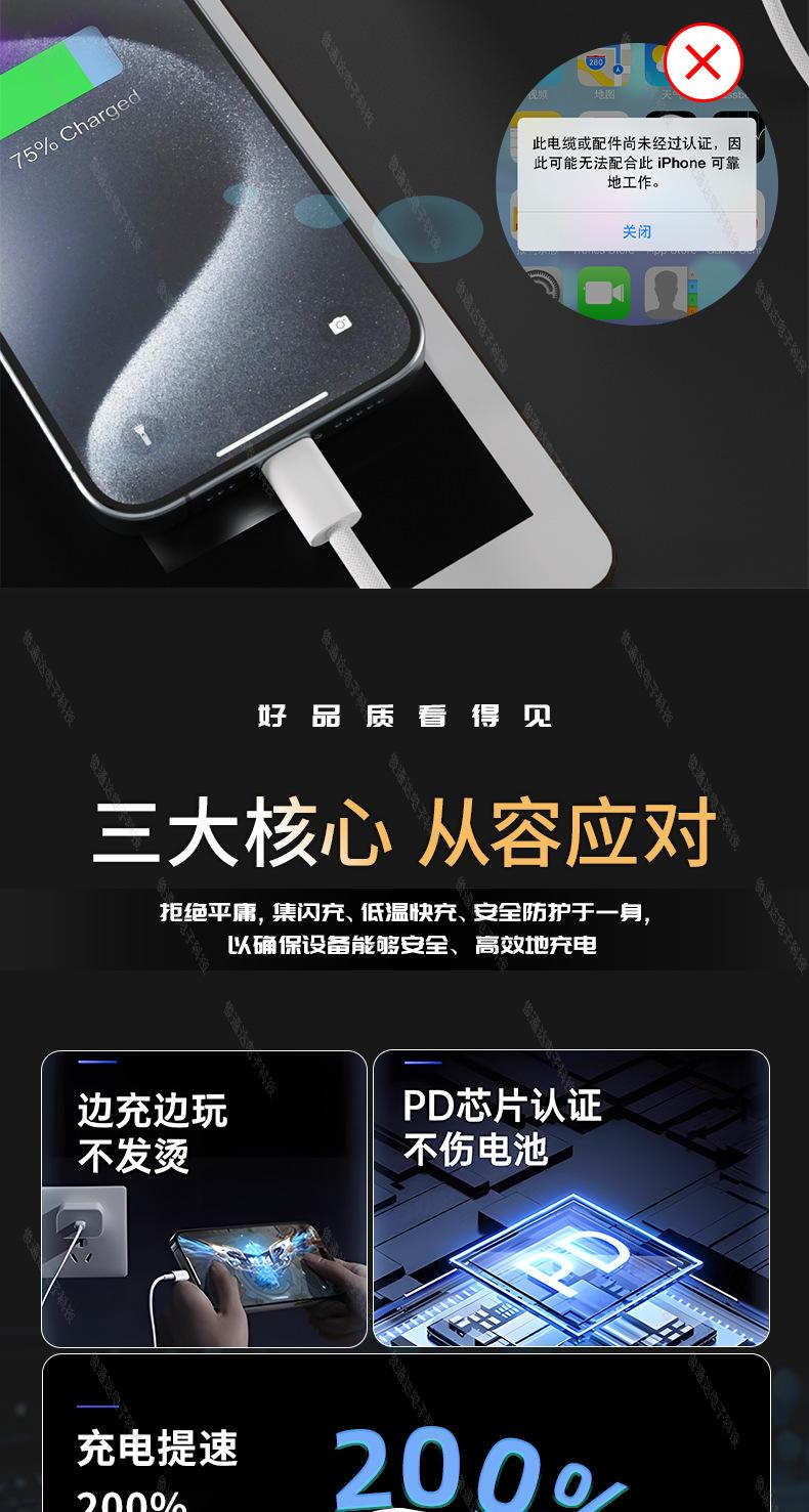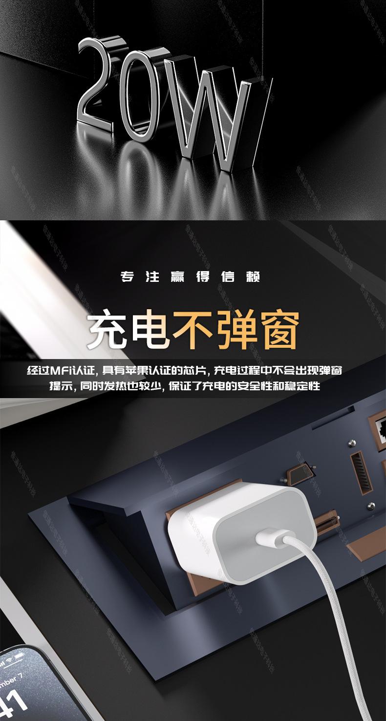 Double Type-C braided fast filling line 1M, Double Type-C braided fast charging line 2M, 20W medium 3C certifi...