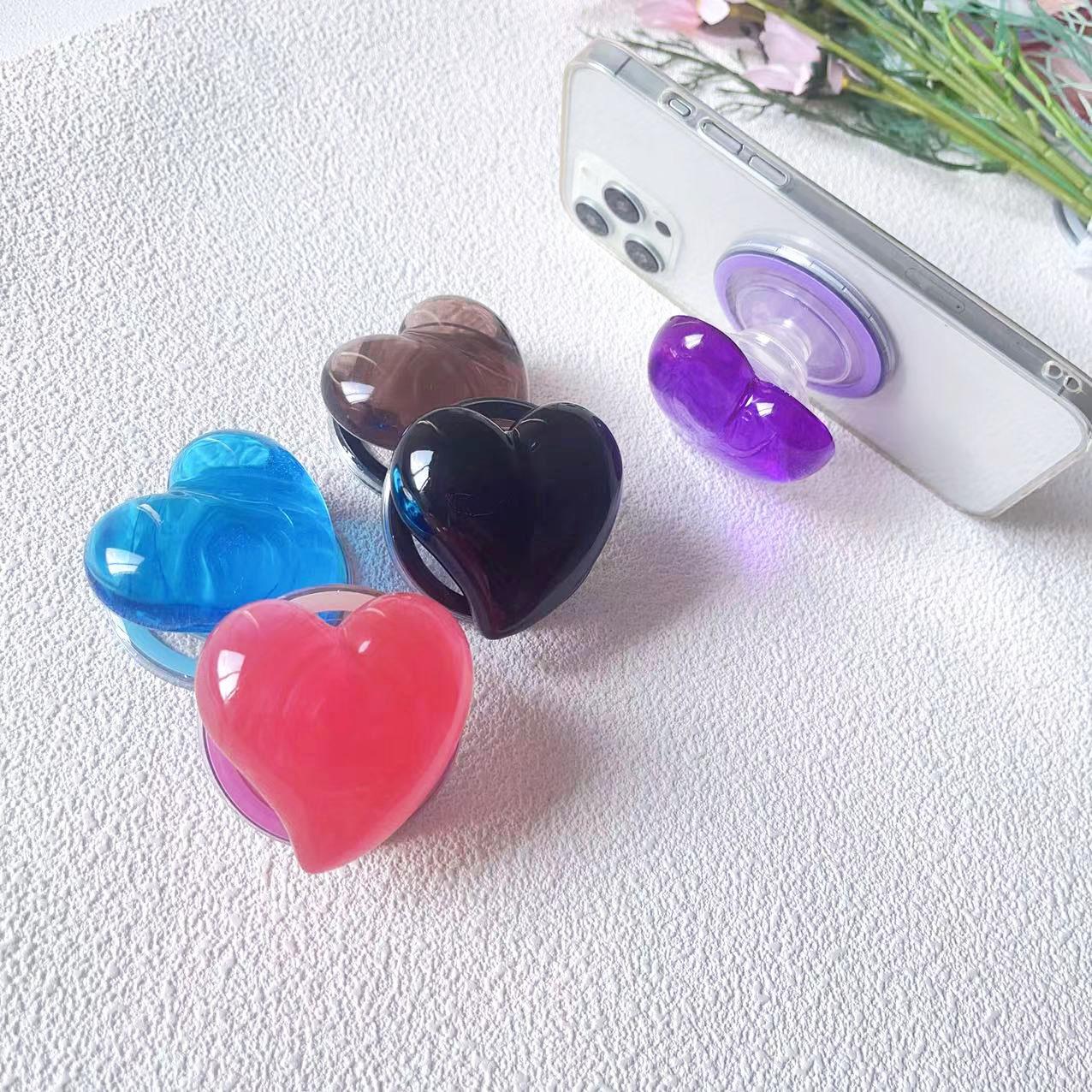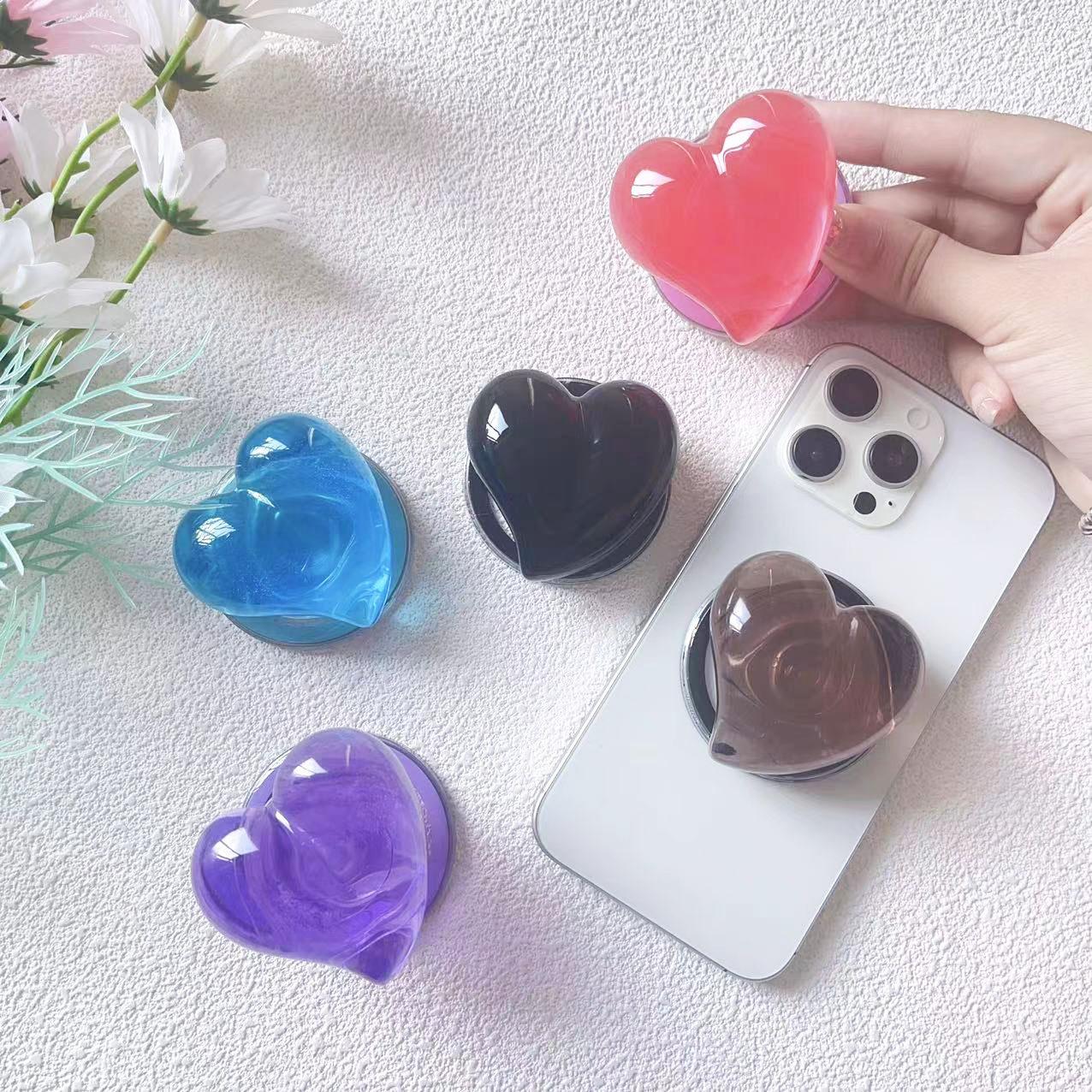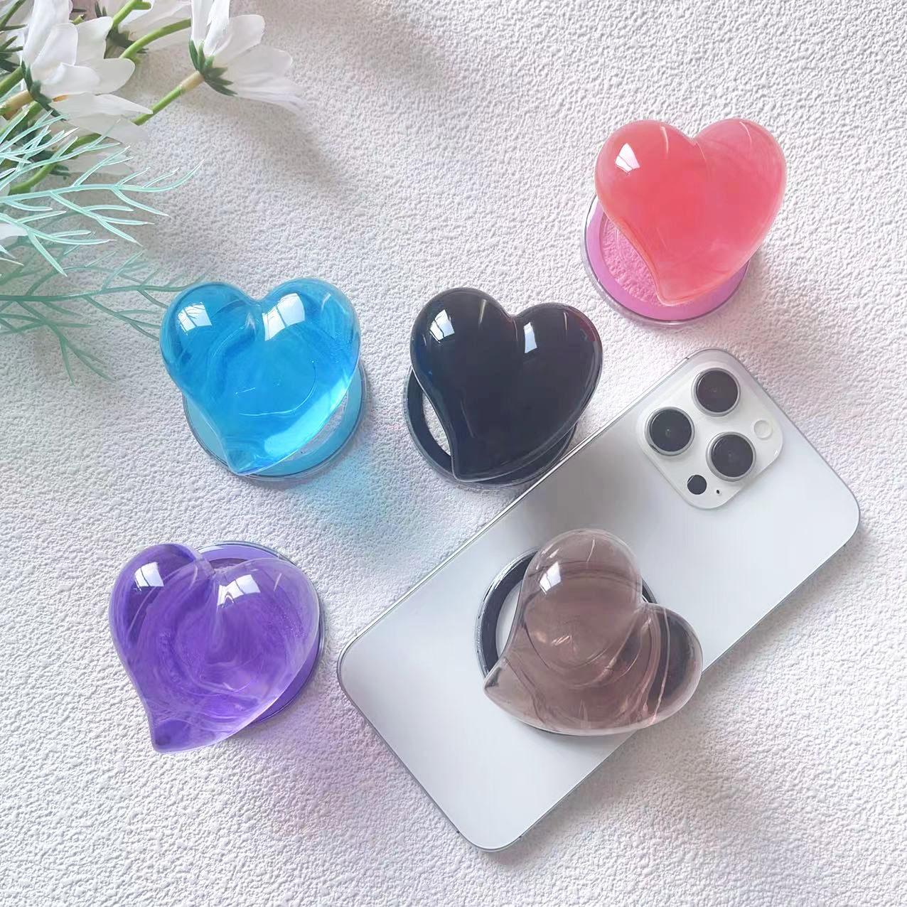 Corazón de Resina Translúcida Pegamento Soporte de Escritorio para Teléfono Móvil Marco Soporte Bolsa de Aire Magnética Soporte Telescópico Magsafe
