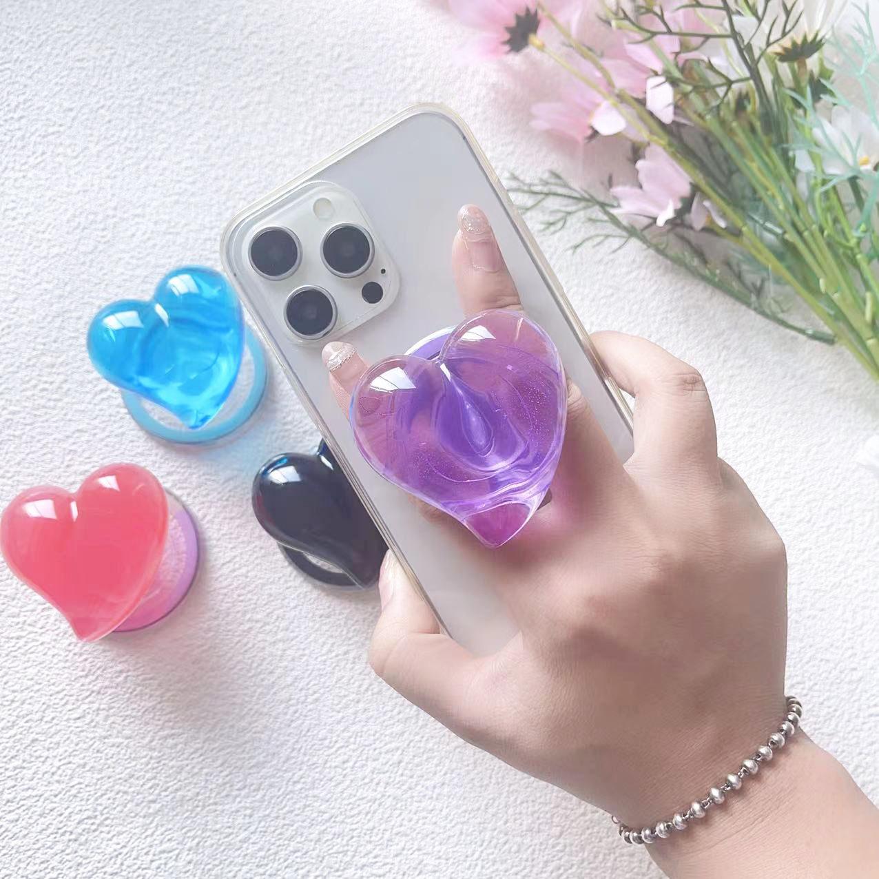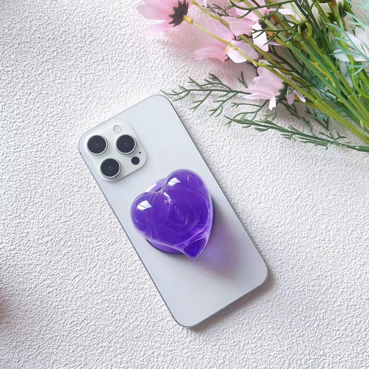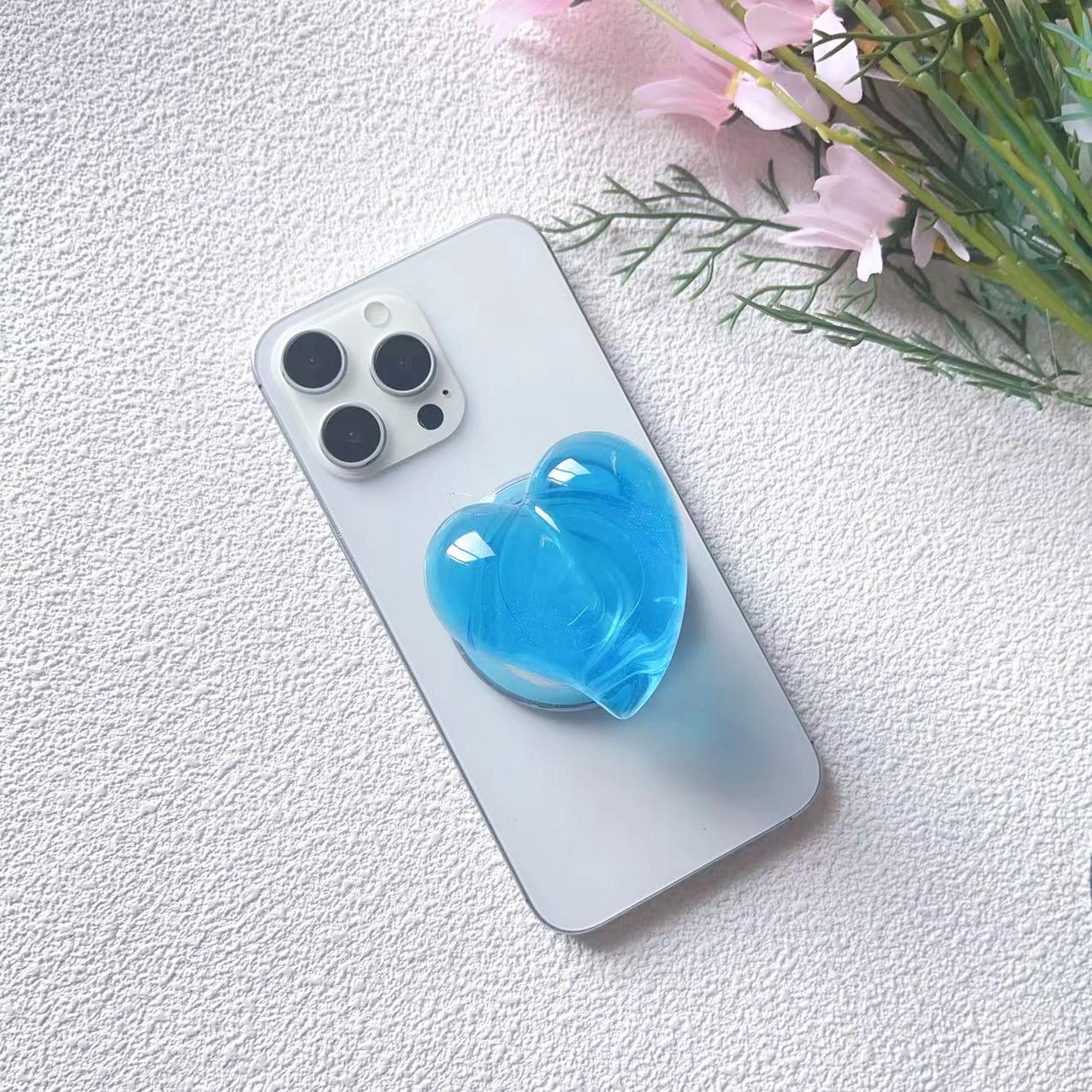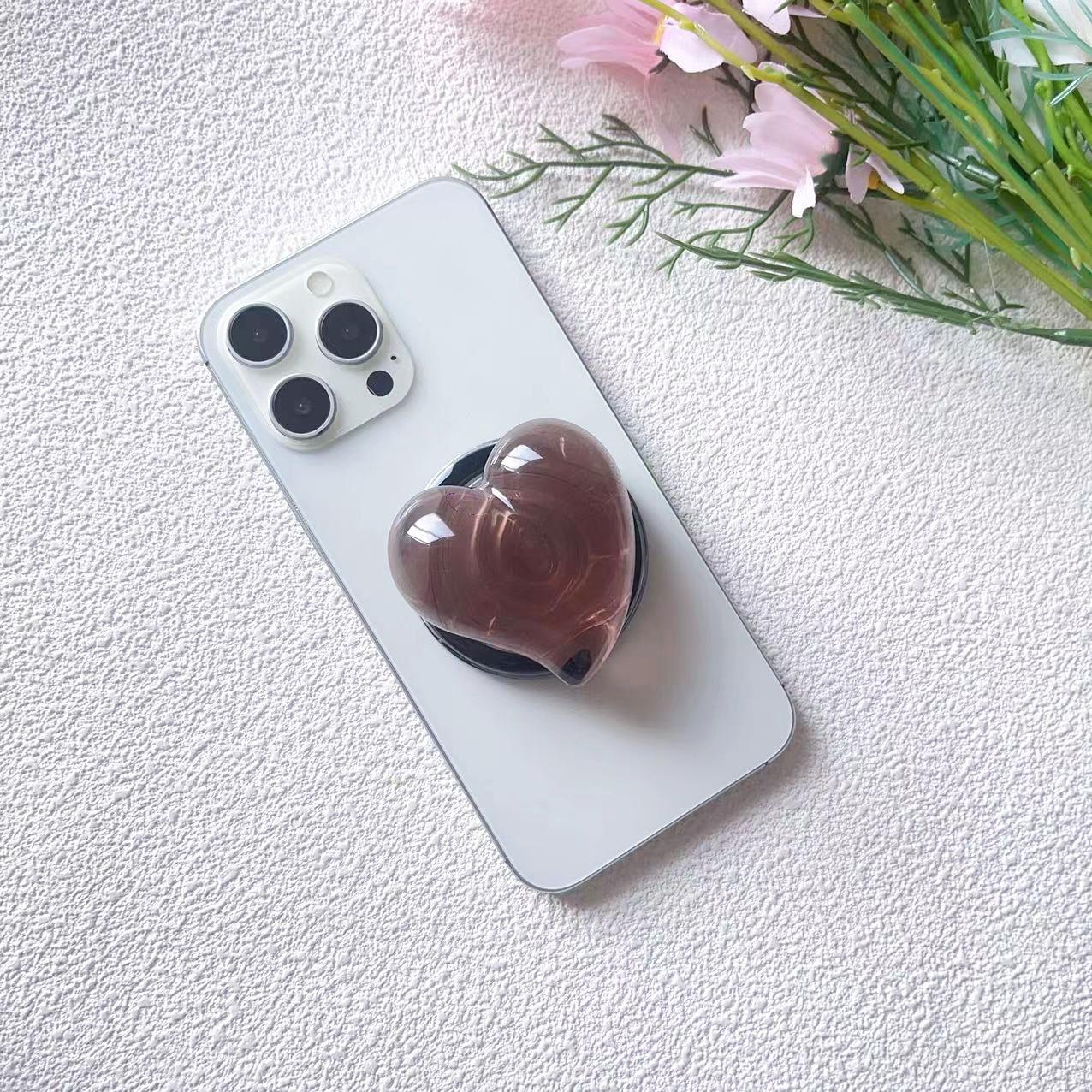 Corazón de Resina Translúcida Pegamento Soporte de Escritorio para Teléfono Móvil Marco Soporte Bolsa de Aire Magnética Soporte Telescópico Magsafe