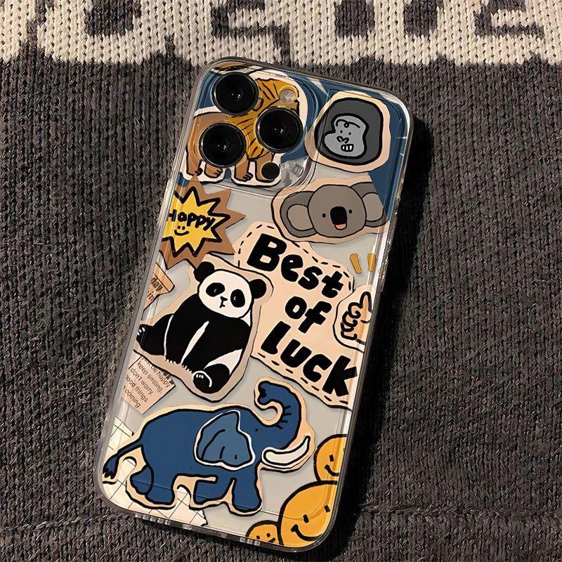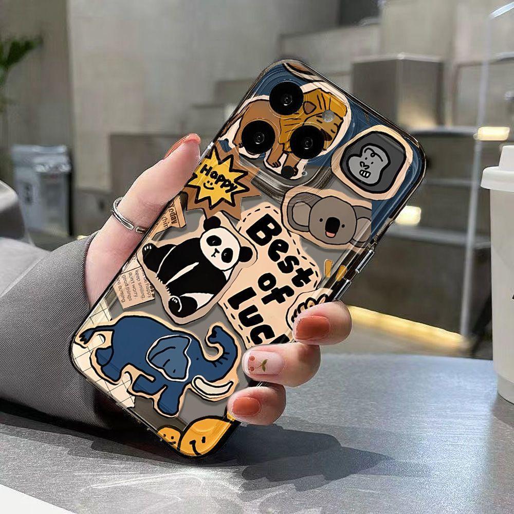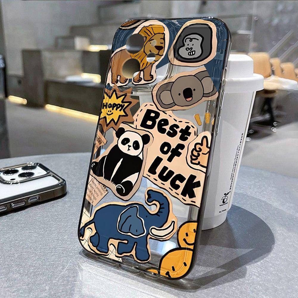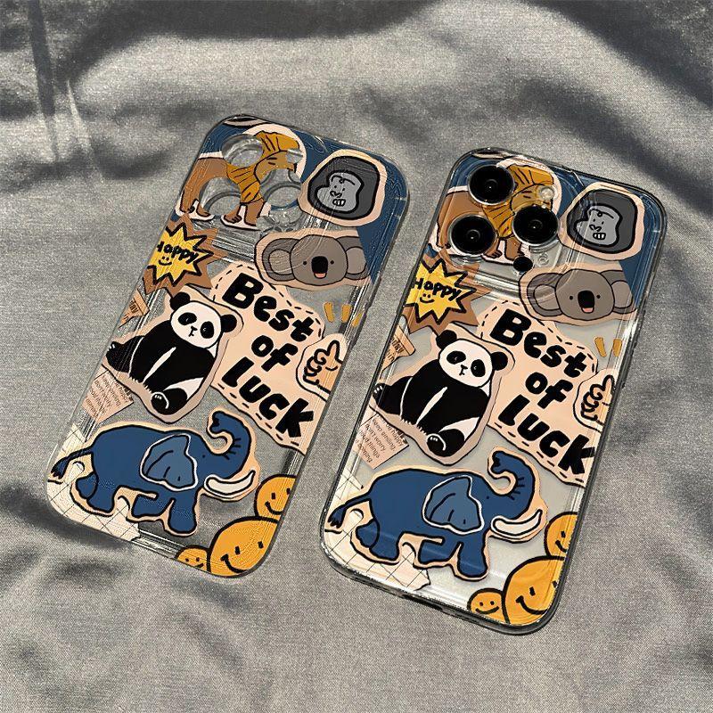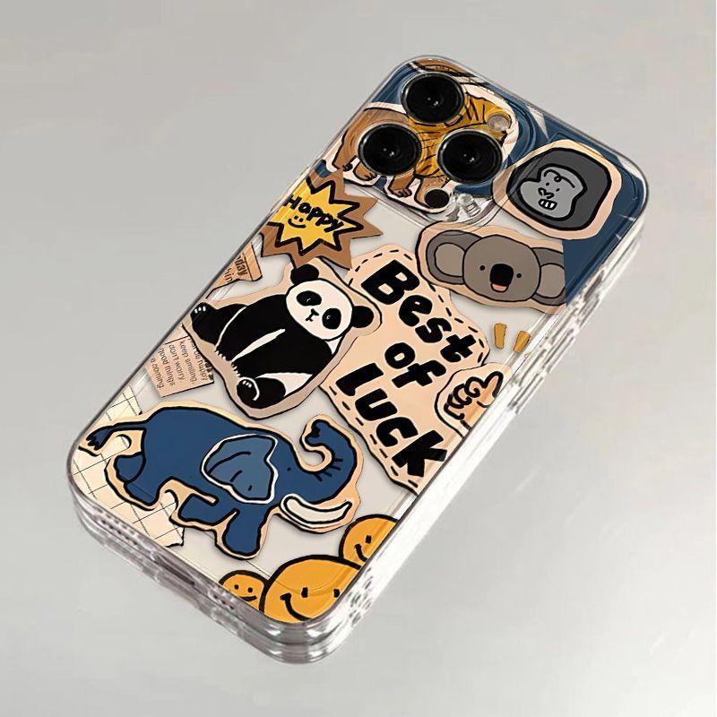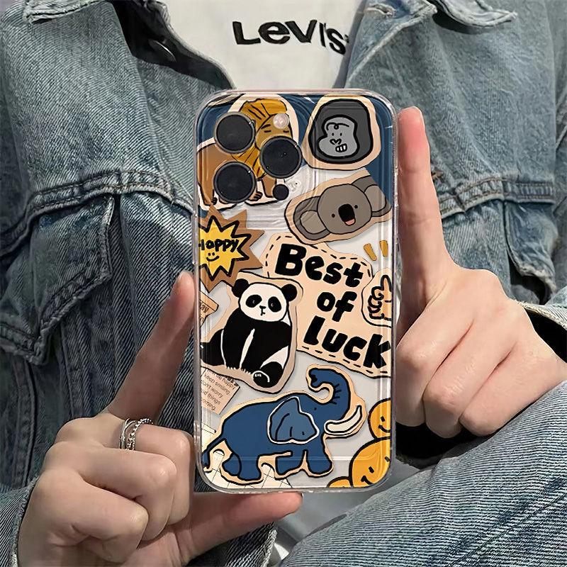 Animalitos Felices Adecuado para iPhone 17 Pro Max Carcasa de Teléfono Espacial Apple 15 Transparente 14/13 Agujero Fino 12