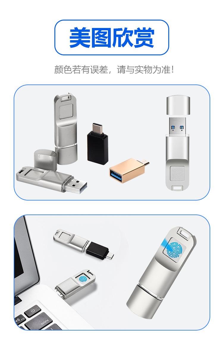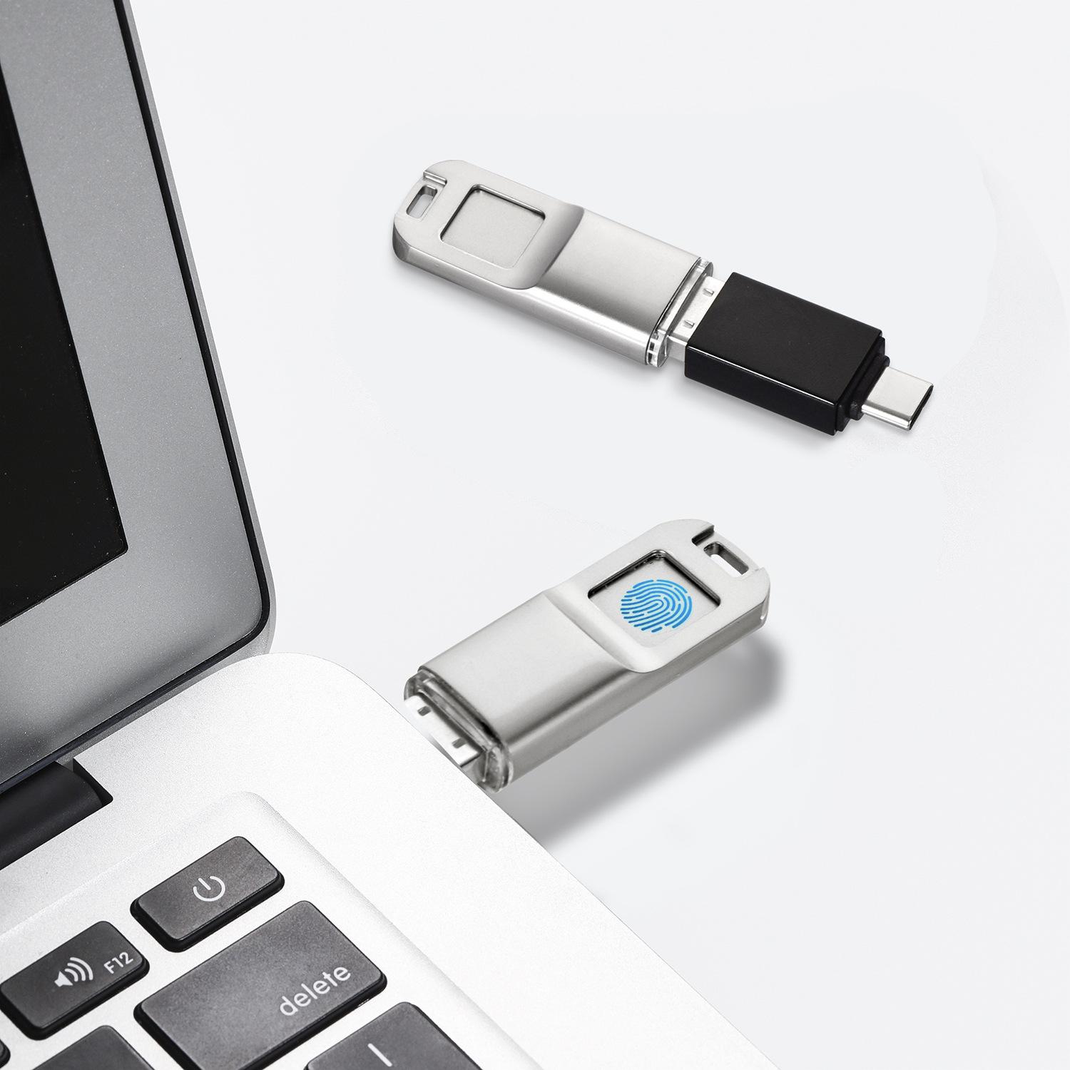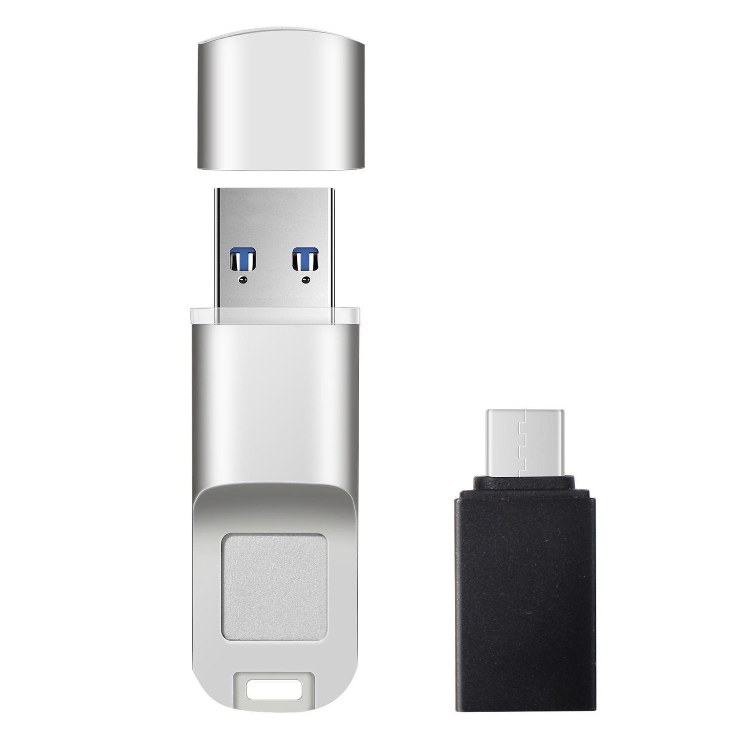Memoria USB con huella digital para teléfono móvil Apple Android tipo c, memoria USB con huella digital de doble uso para computadora, gran capacidad 256g