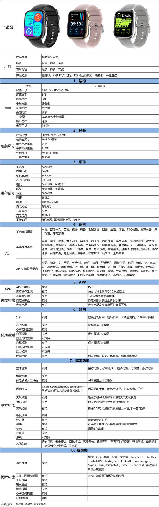 Waterproof, Take pictures, Step counting, Heart rate monitoring, blood pressure measurement, Social Entertainm...