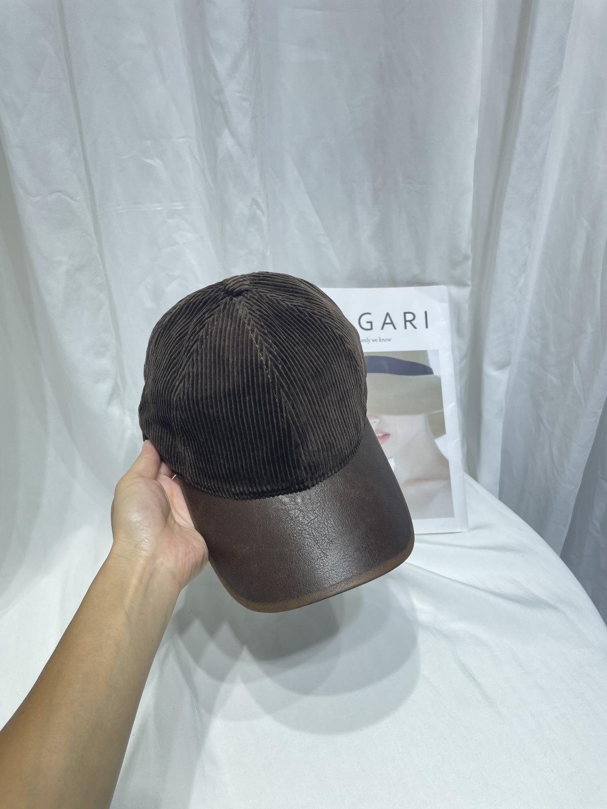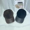 Gorra de Béisbol de Pana con Costuras de Cuero PU Simple Estilo Japonés para Hombres y Mujeres Otoño e Invierno Moda Casual Color Sólido Gorra Cálida