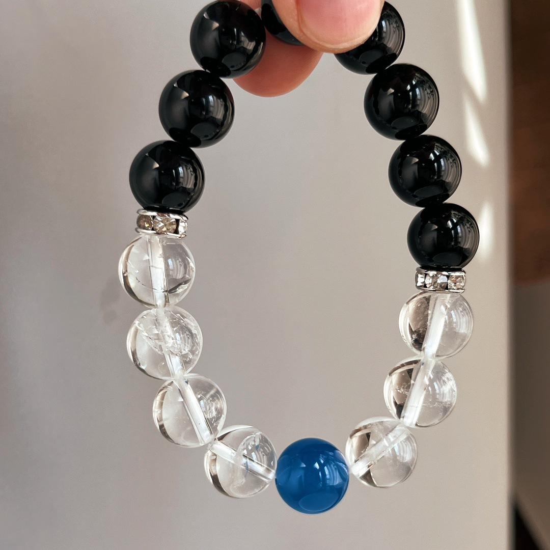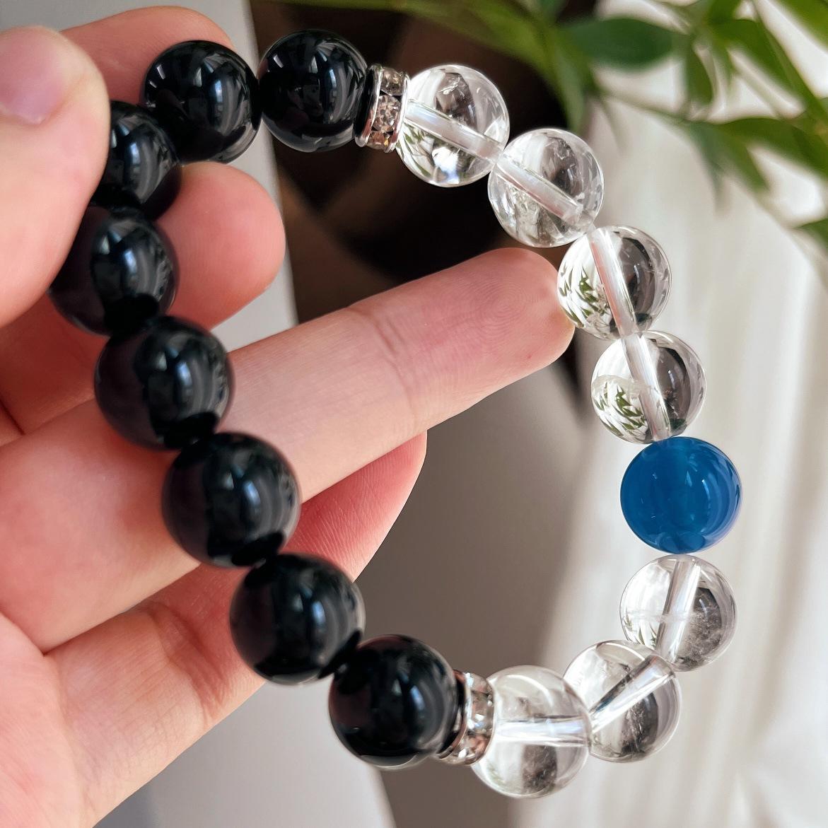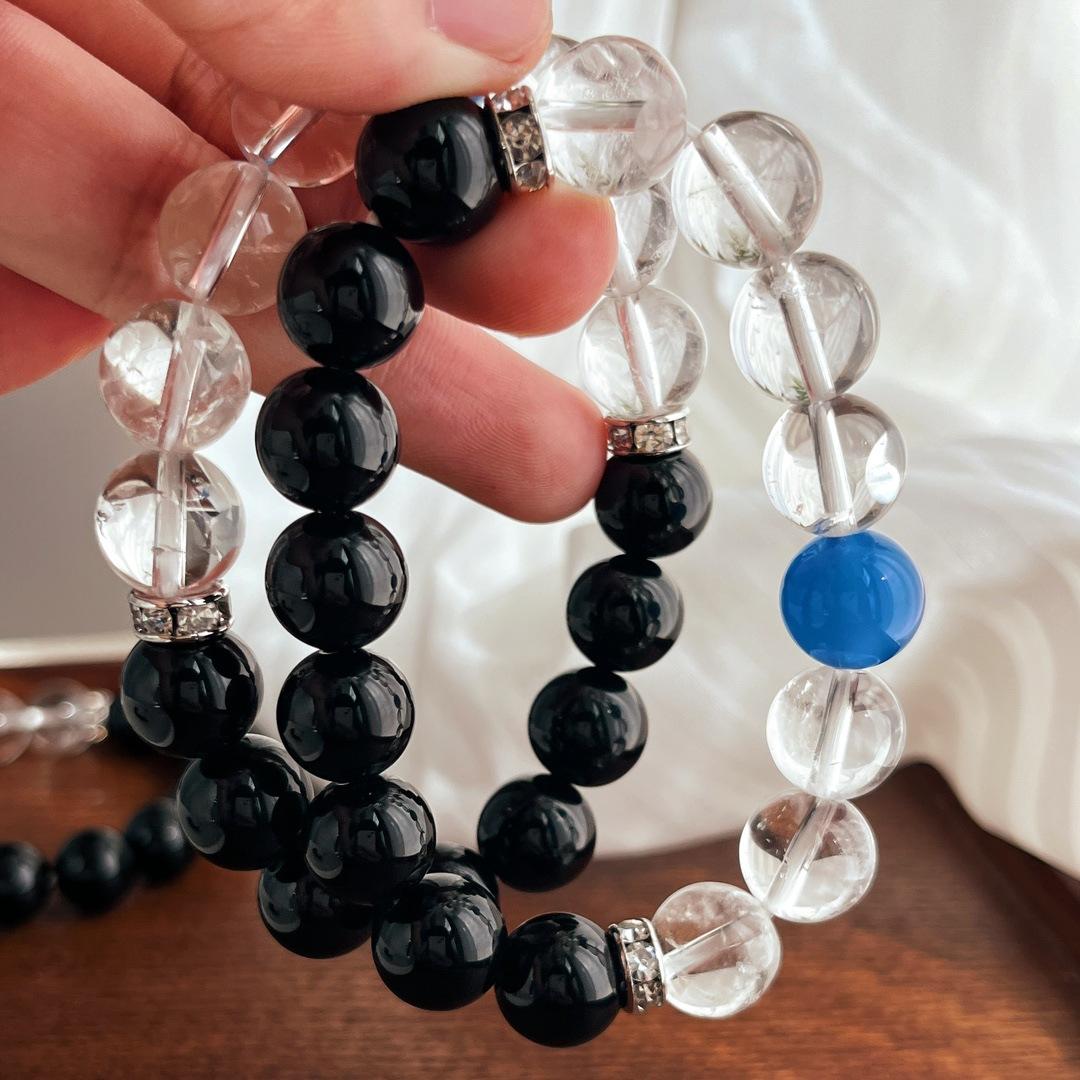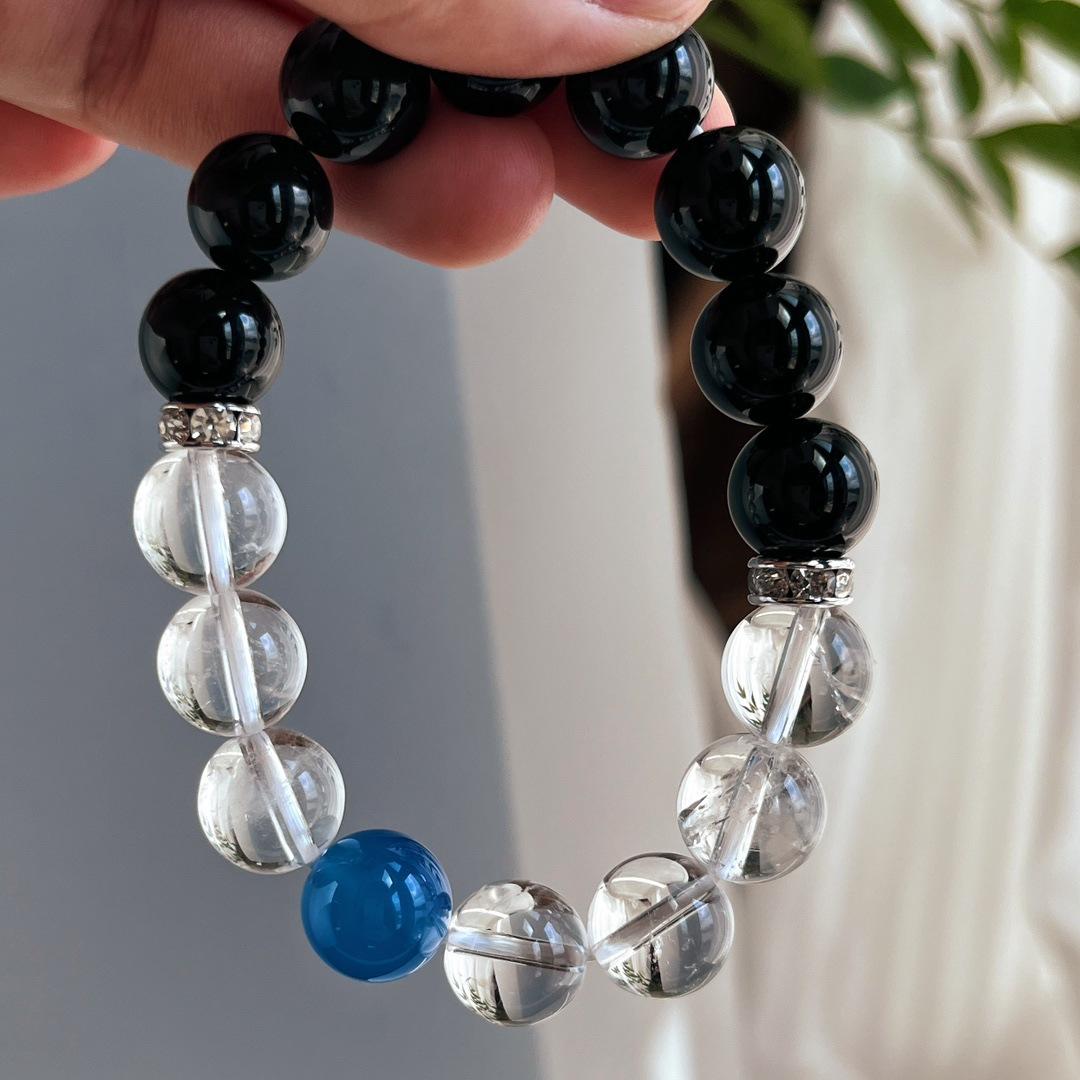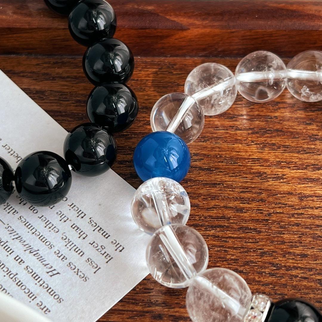 Compra Pulsera Pulsera de Grano Grande de 12MM Vintage Guofeng Ónix Negro Natural Cristal Blanco Natural al por mayor en Joom.pro